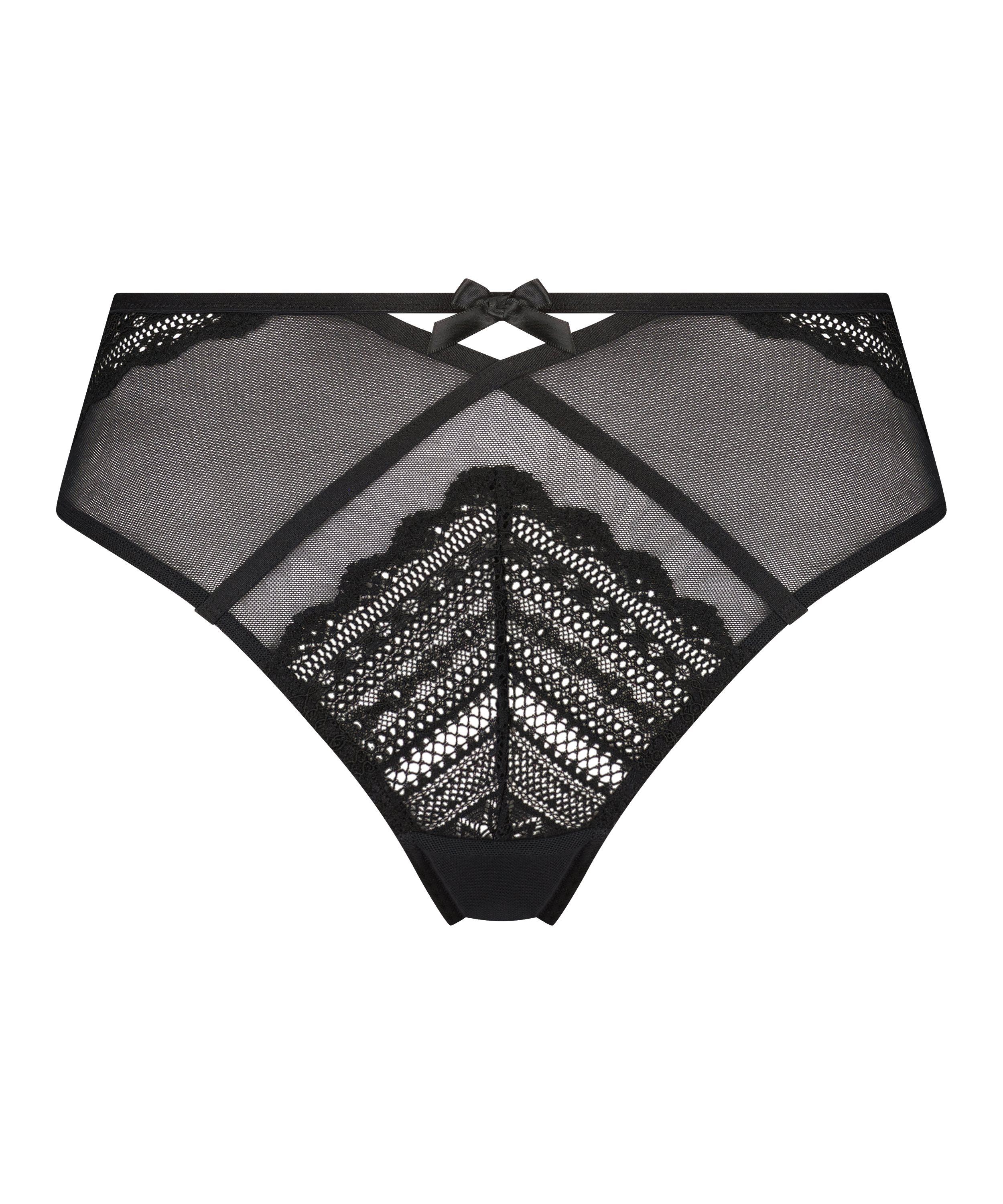 ¡Esta brasileña te quedará genial! Contiene encaje y malla y tiene un bonito lazo en la parte delantera. Combina la braguita con prendas a juego para completar tu look.