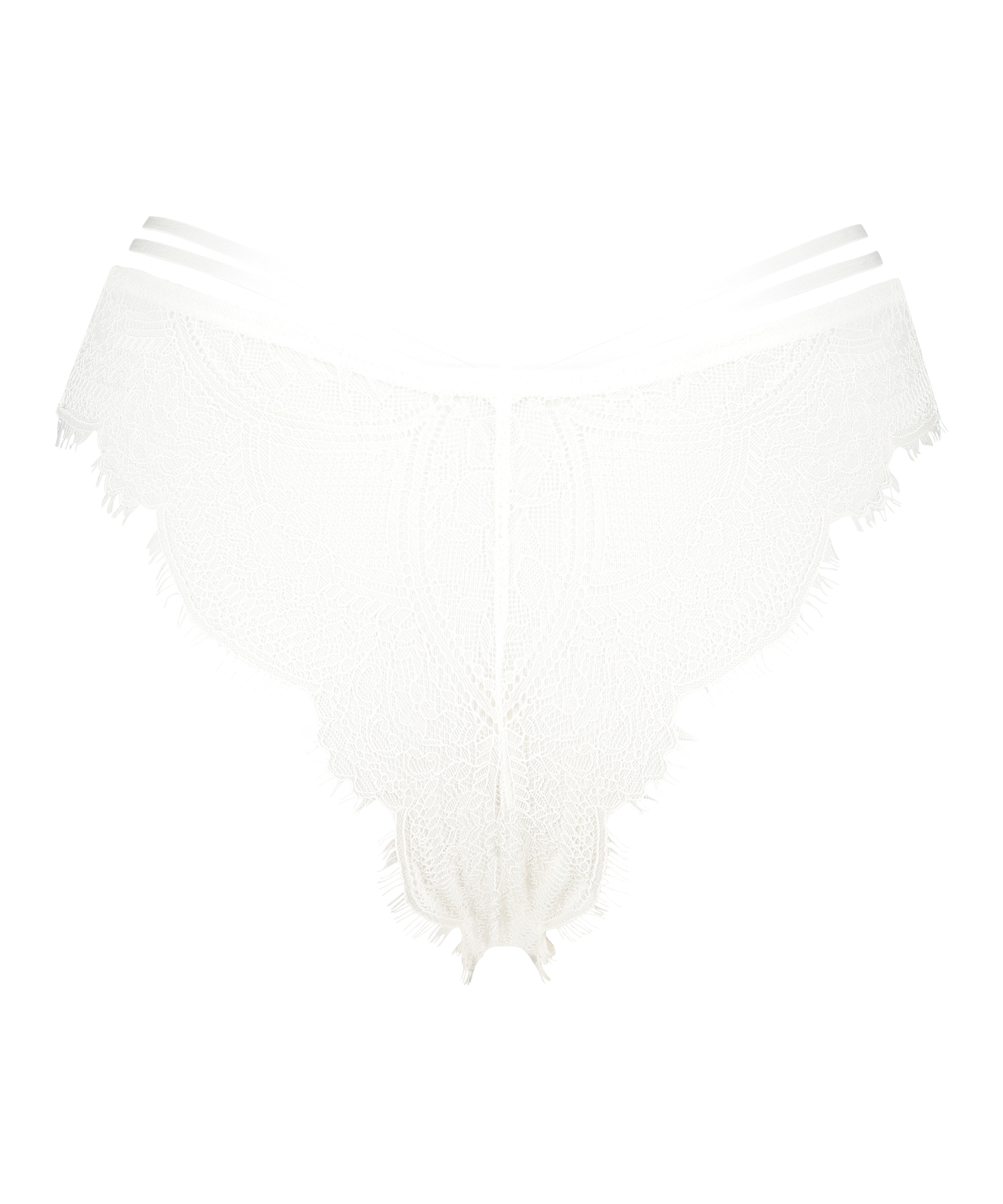¡Esta brasileña de tiro alto es lo más! La braguita hace que tus piernas parezcan un poco más largas y tiene detalles de tiras. Combínala con un sujetador o bralette a juego para formar un conjunto.