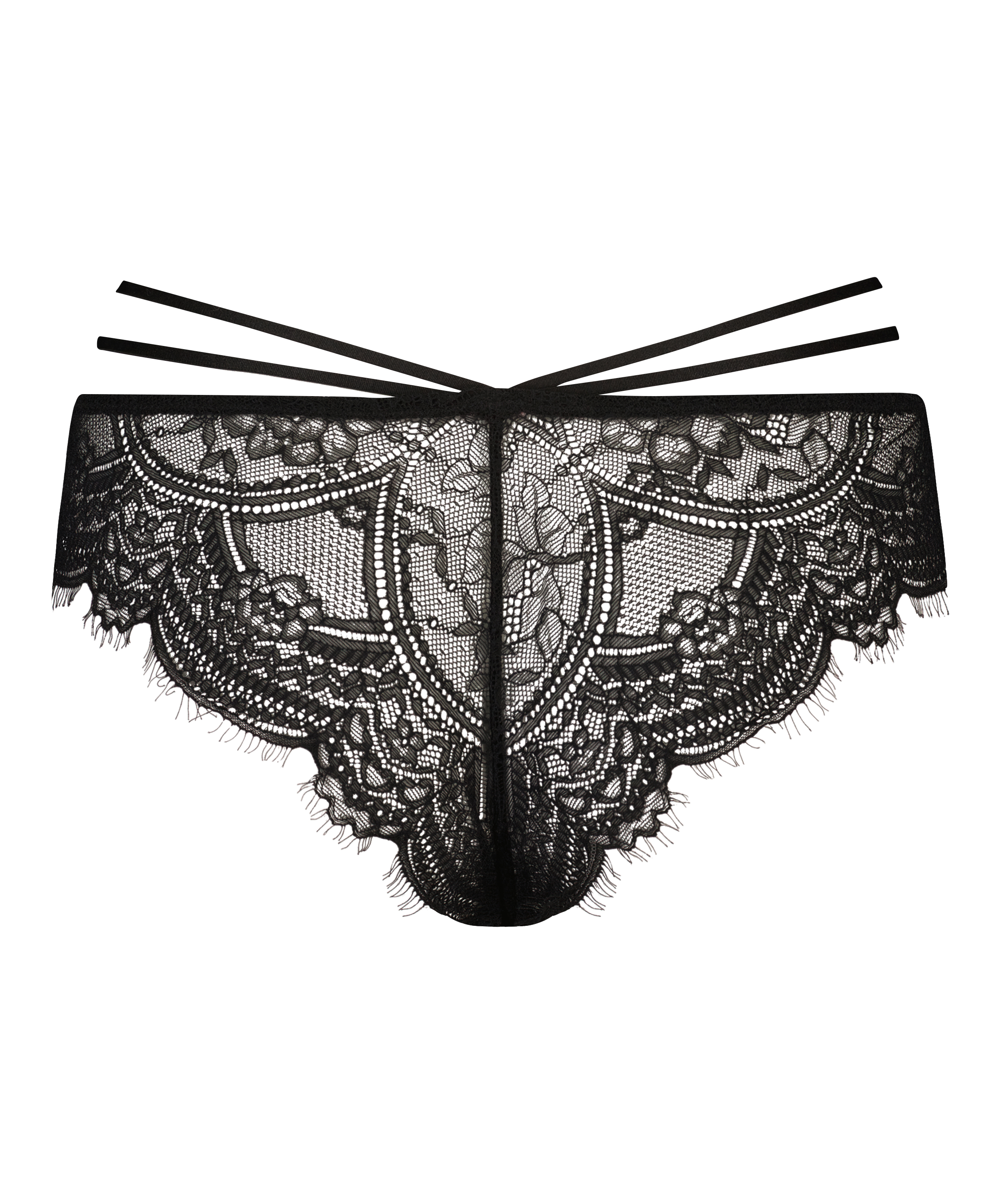 ¡Esta brasileña de tiro alto es lo más! La braguita hace que tus piernas parezcan un poco más largas y tiene detalles de tiras. Combínala con un sujetador o bralette a juego para formar un conjunto.