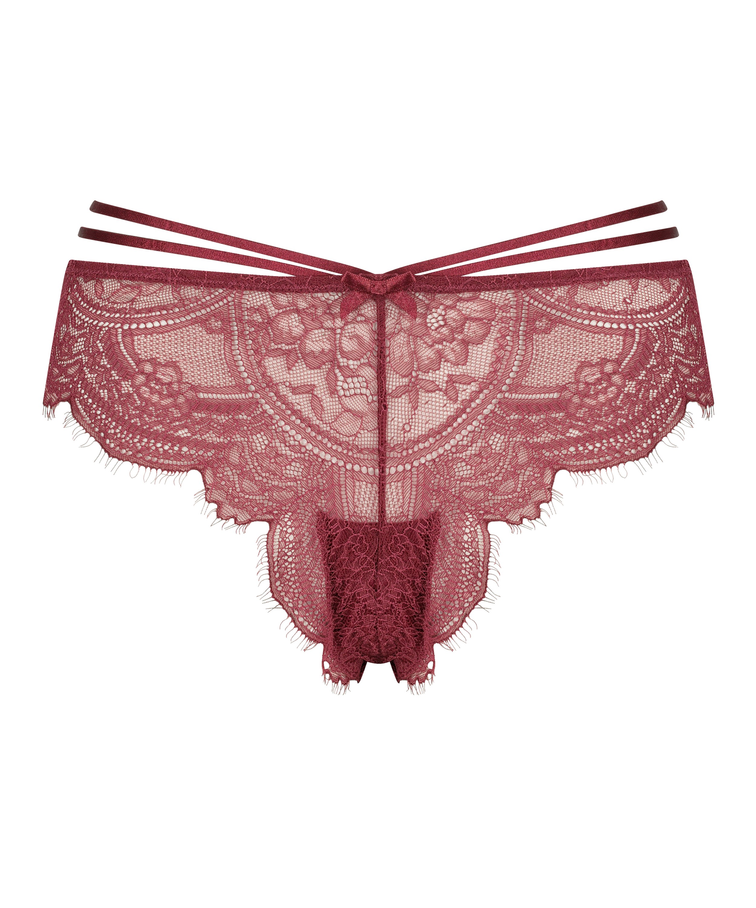 ¡Esta brasileña de tiro alto es lo más! La braguita hace que tus piernas parezcan un poco más largas y tiene detalles de tiras. Combínala con un sujetador o bralette a juego para formar un conjunto.