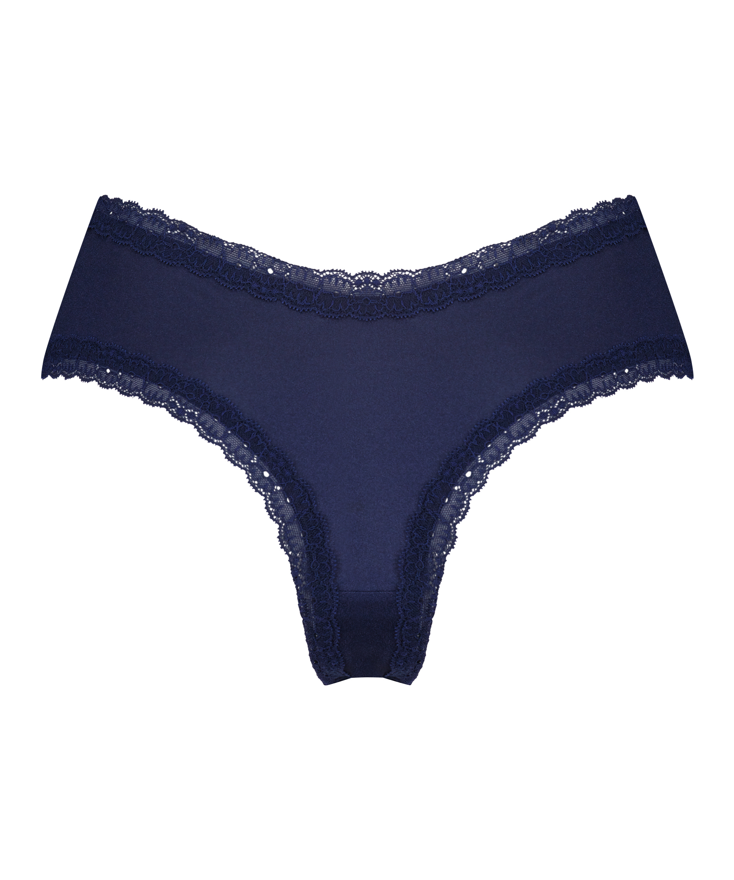 ¡Esta brasileña en forma de V es siempre una buena idea! Los bordes son de encaje y hay detalles de tiras en la parte delantera. También tiene un pequeño lazo. ¡Fácil de combinar con diferentes sujetadores de nuestra colección!