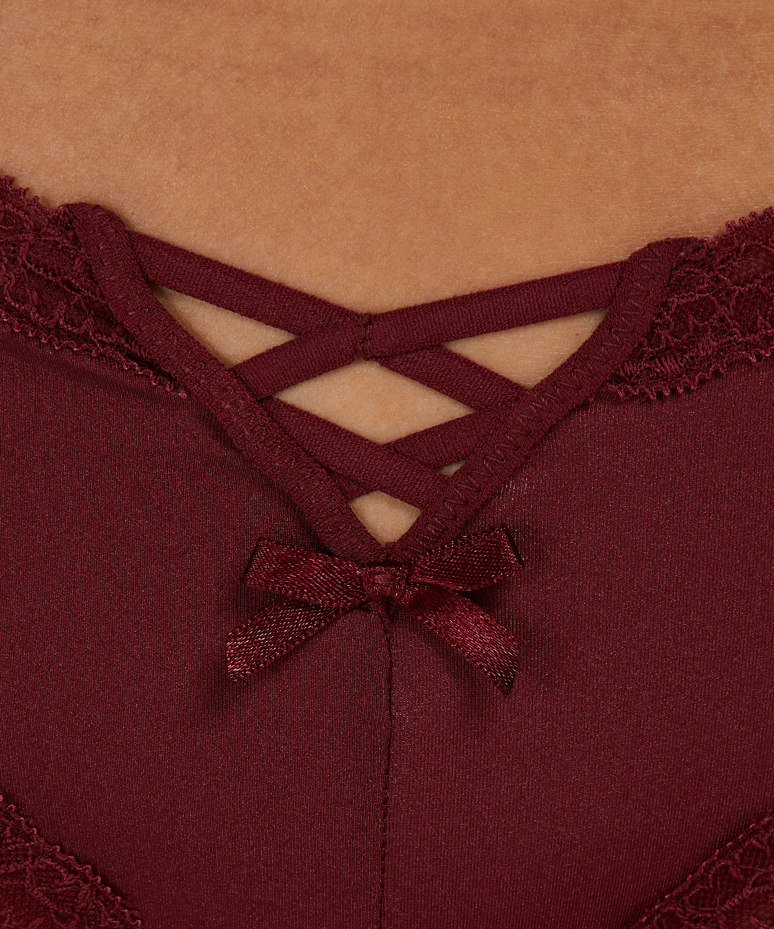 ¡Esta brasileña en forma de V es siempre una buena idea! Los bordes son de encaje y hay detalles de tiras en la parte delantera. También tiene un pequeño lazo. ¡Fácil de combinar con diferentes sujetadores de nuestra colección!