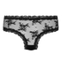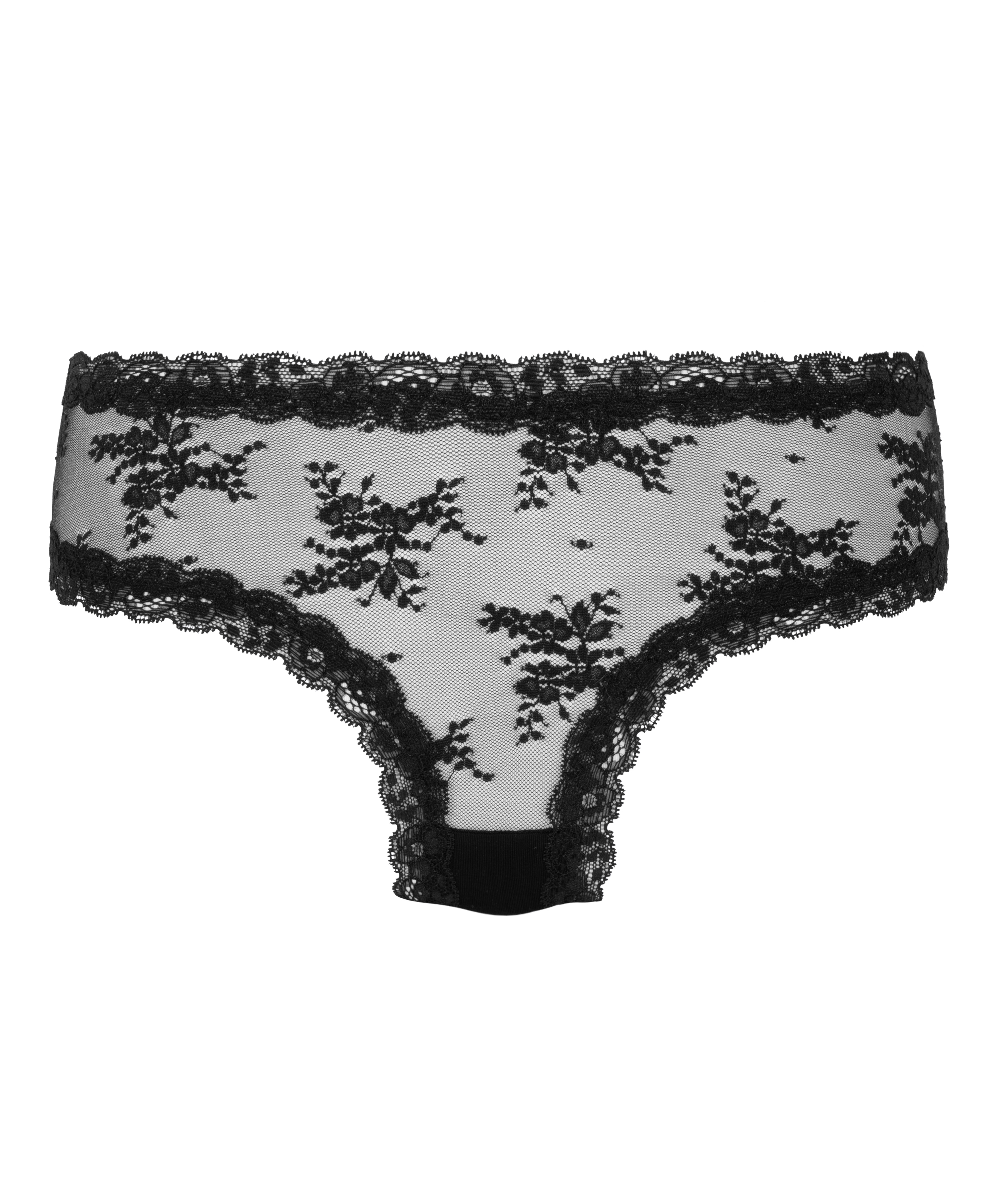 La coquetería se aúna con la feminidad en esta brasileña con forma de V. Diseñada para asentarse cómodamente en las caderas, la favorecedora parte delantera en forma de V alarga la silueta, mientras que la parte trasera de encaje añade un toque romántico. Se puede combinar con tu sujetador favorito para un look completo.