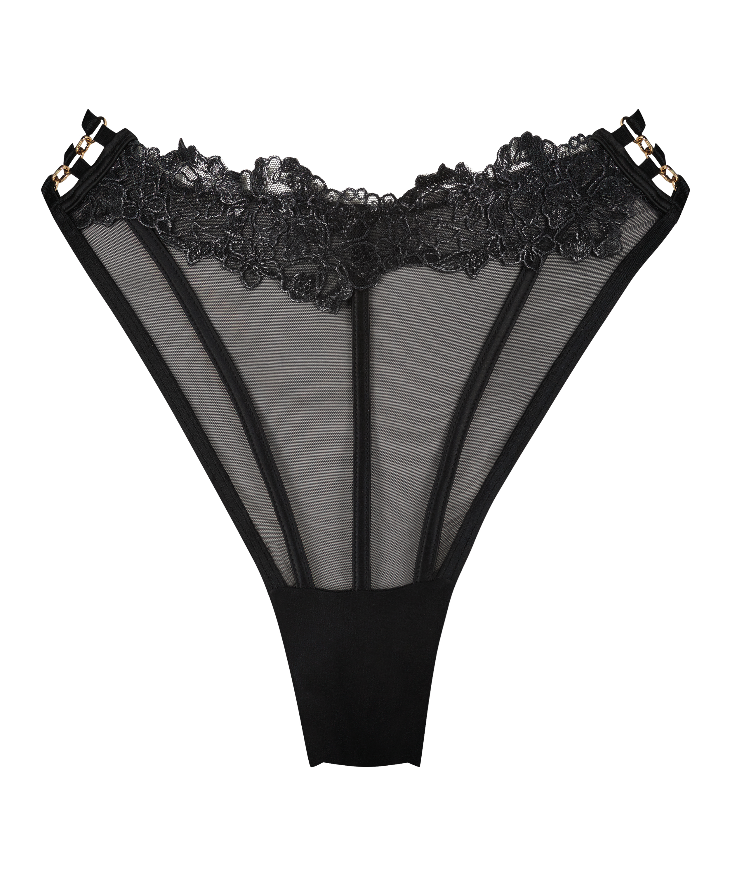¡Seduce con esta braguita brasileña! Esta braguita brasileña tiene detalles de tiras. El tejido de encaje de la parte delantera y trasera confiere a esta prenda un aspecto elegante y sexy a la vez. Combínalo con otras prendas a juego de nuestra colección Private.