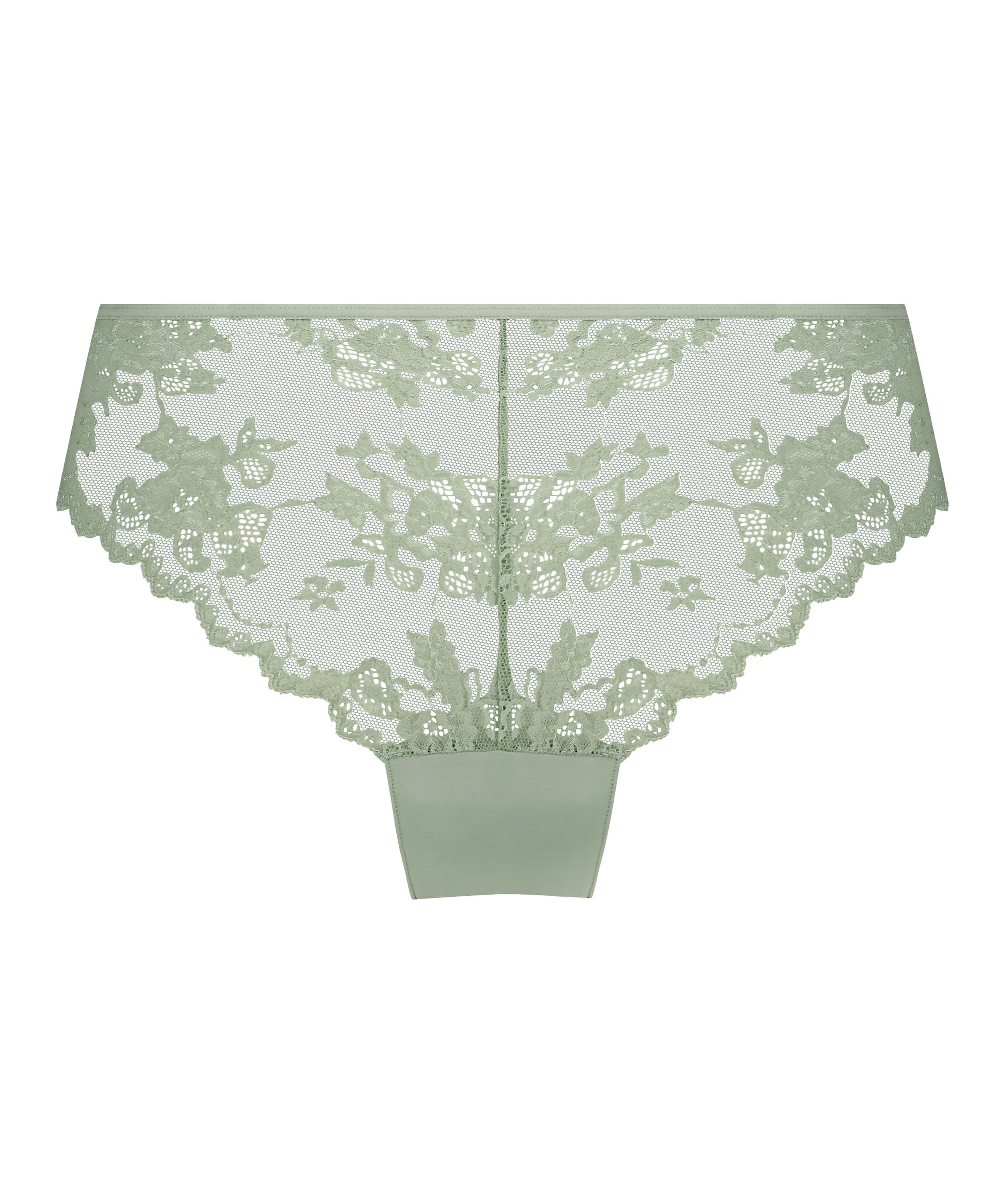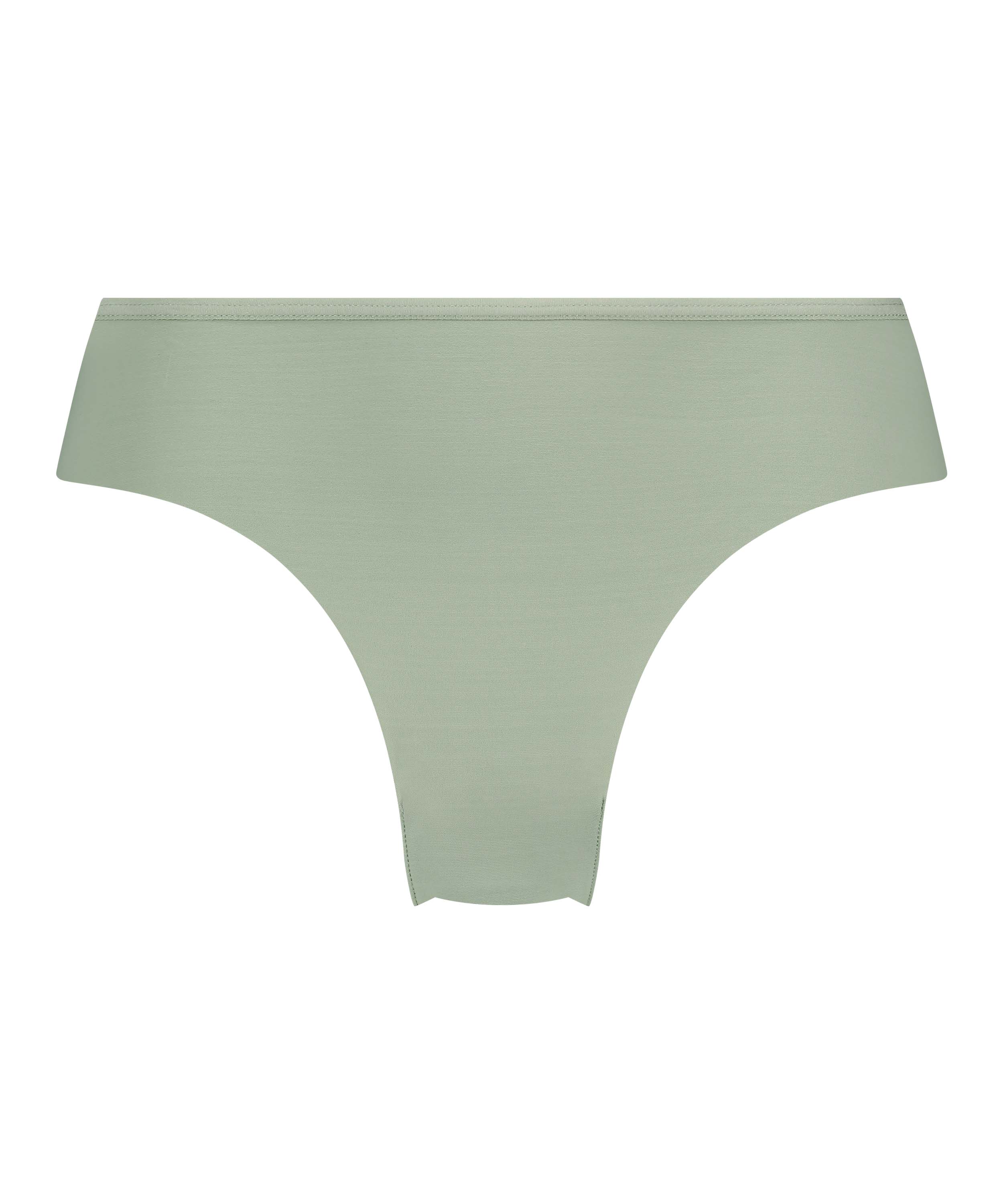 Al no tener costuras, esta braguita brasileña no se nota debajo de ropa ajustada. La parte trasera de encaje le da un aire seductor.