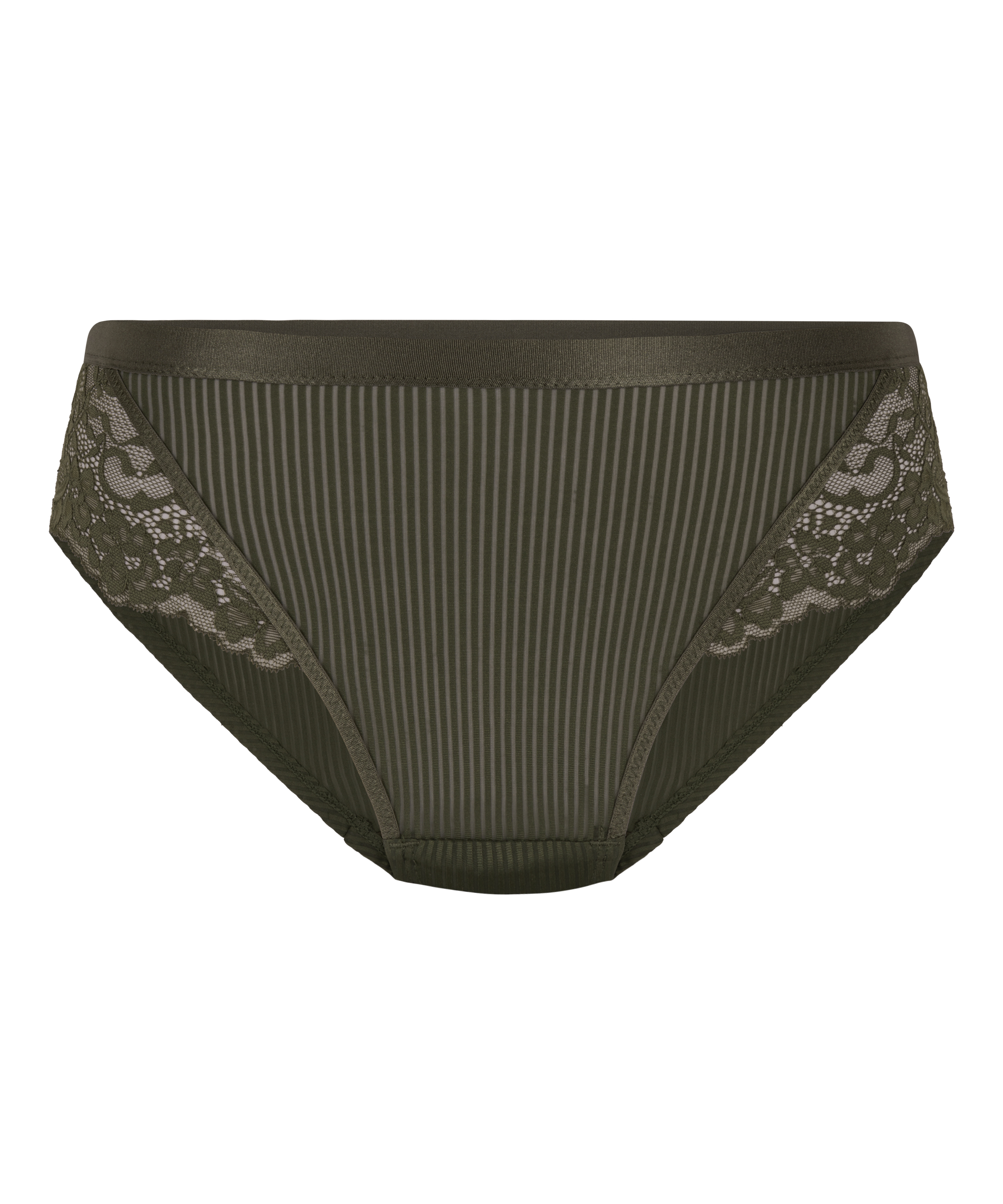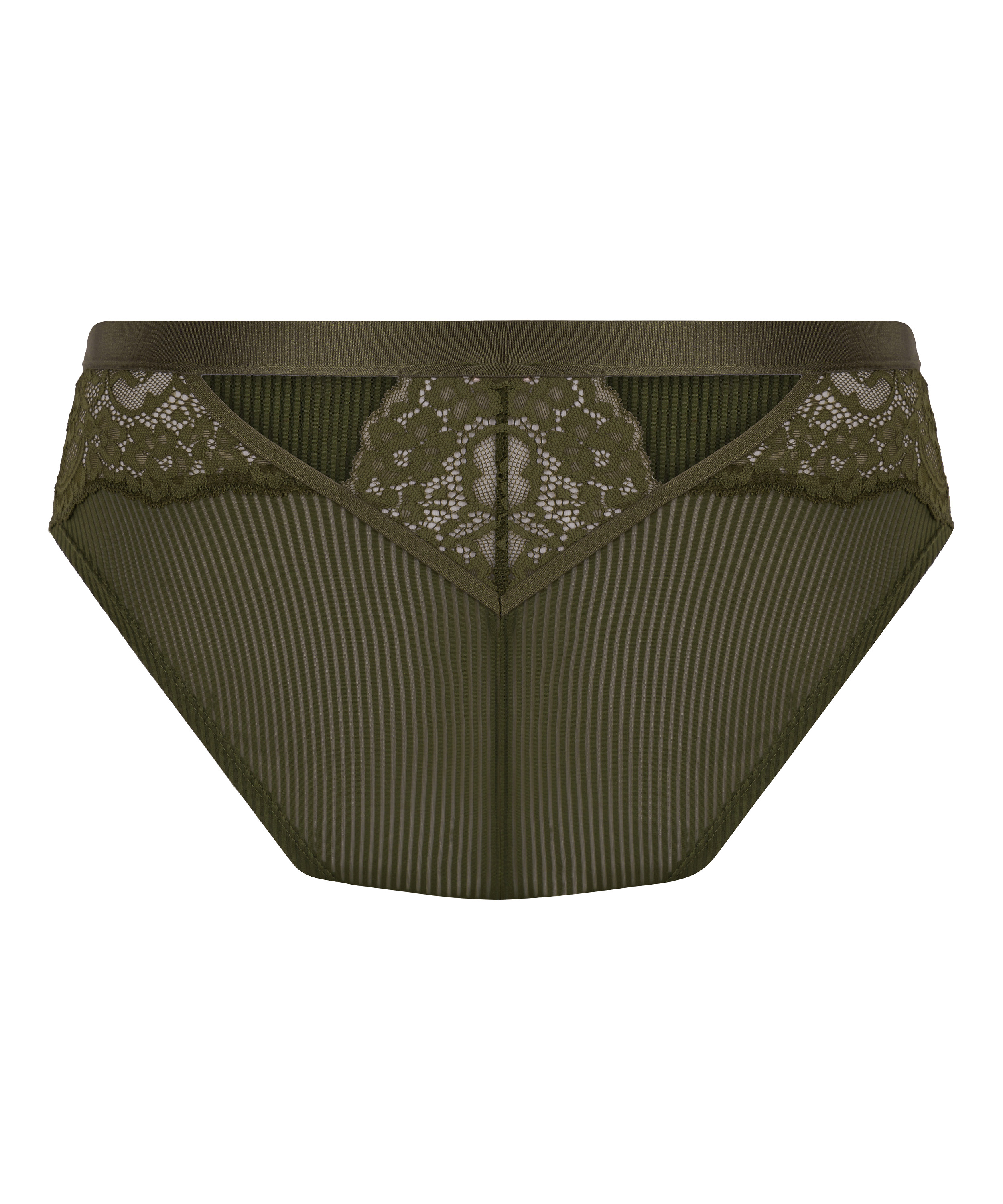 Siéntete bien con esta brasileña de cintura alta. Tiene un bonito acabado de encaje en los laterales y una sexy abertura de encaje en la espalda. ¡Combínala con tu sujetador favorito!