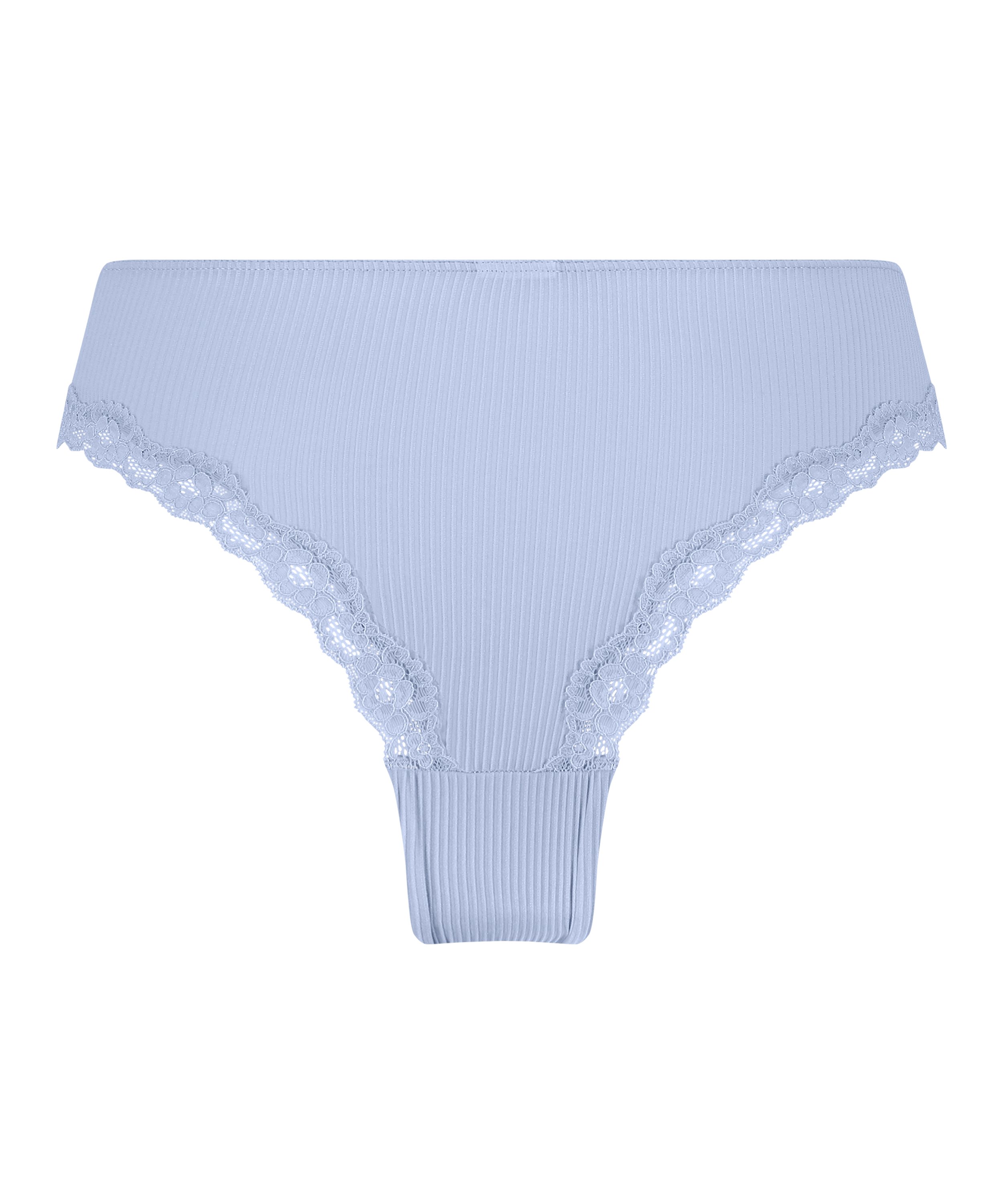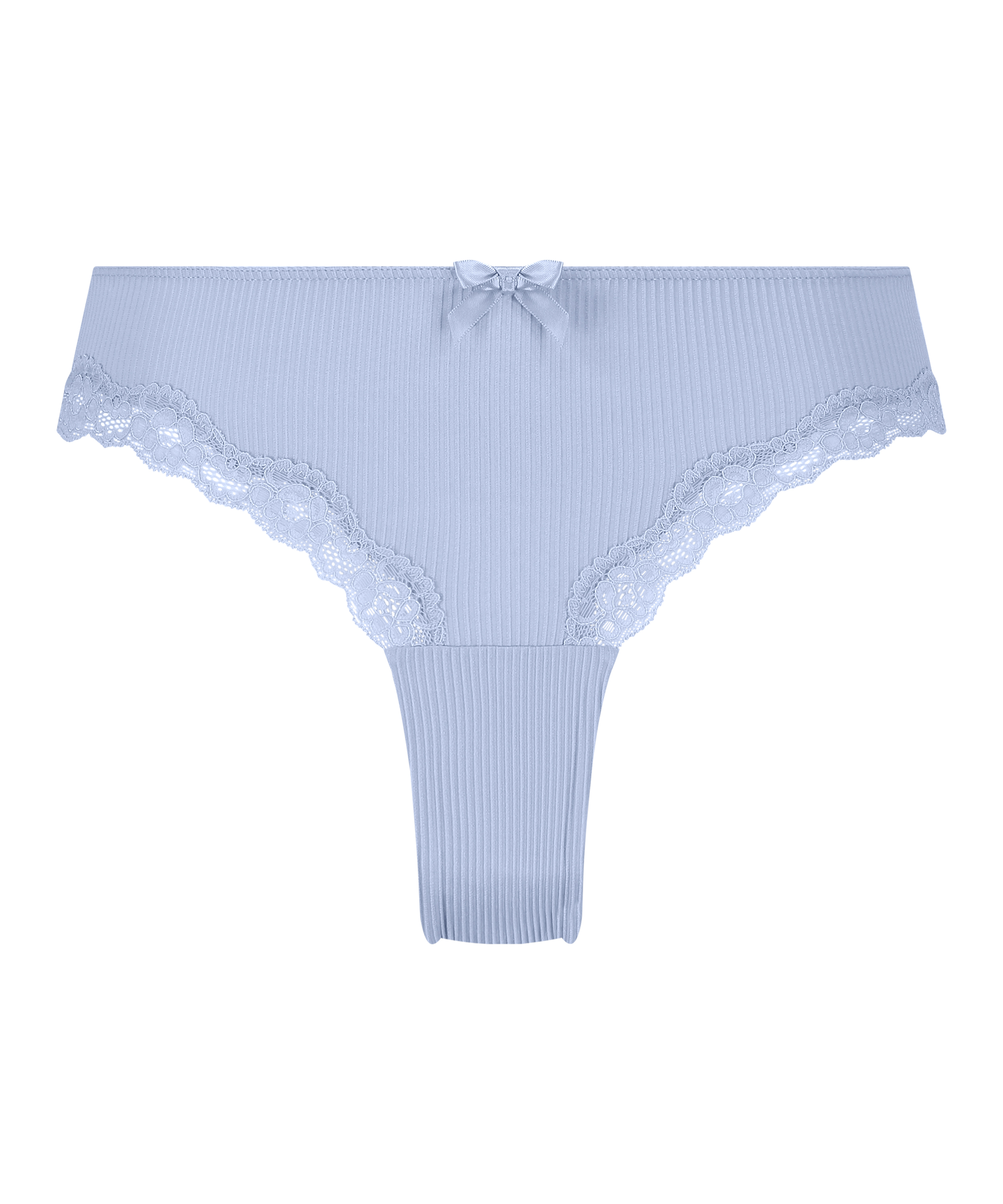 ¡Esta braguita brasileña es una prenda imprescindible! Está confeccionado en tejido de punto y tiene un acabado de ribete de encaje. Esta brasileña tiene un lacito en la parte delantera. Completa tu conjunto con el sujetador a juego.
