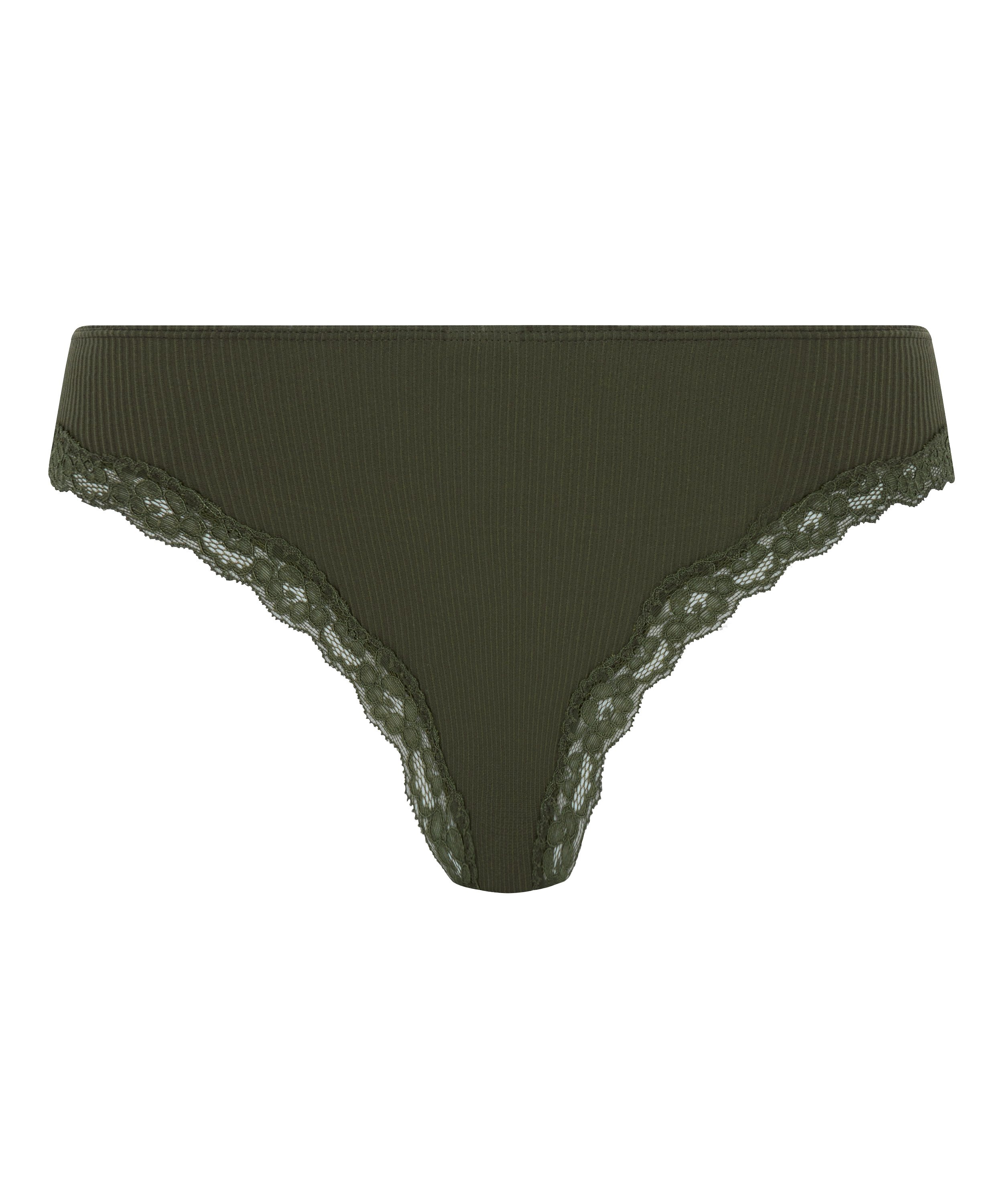 ¡Esta braguita brasileña es una prenda imprescindible! Está confeccionado en tejido de punto y tiene un acabado de ribete de encaje. Esta brasileña tiene un lacito en la parte delantera. Completa tu conjunto con el sujetador a juego.
