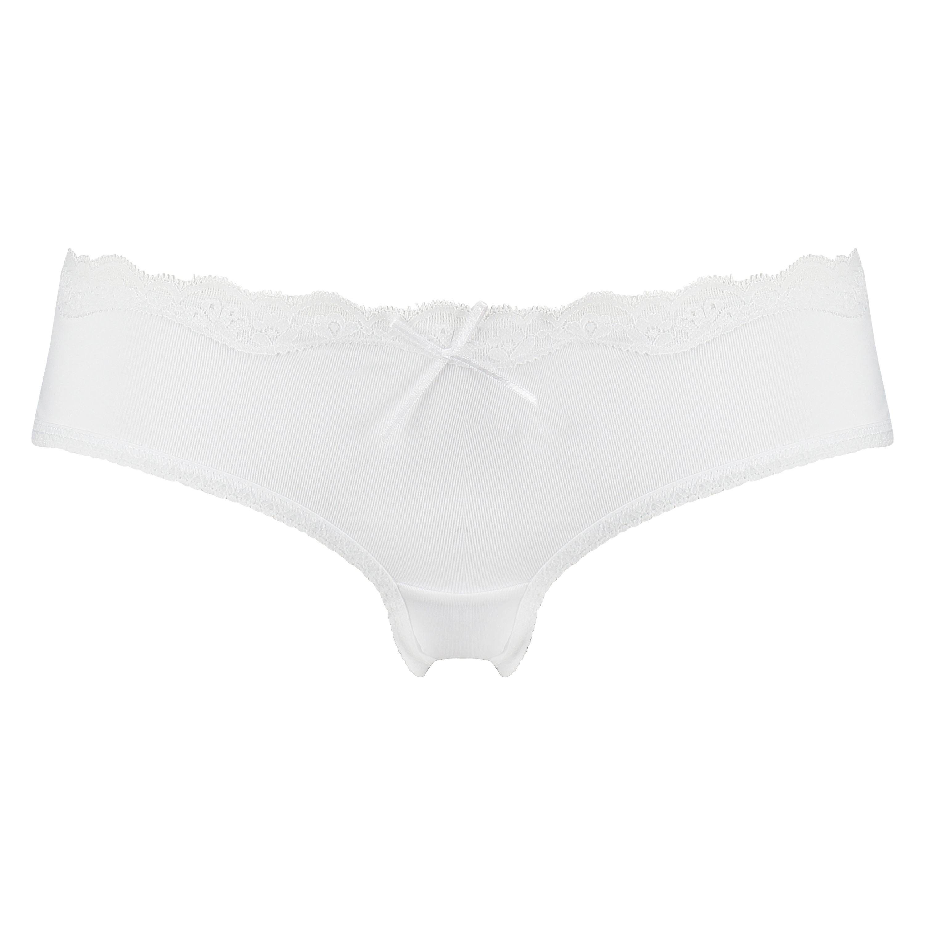 Esta braguita brasileña básica es ideal para su uso diario. La braguita no aprieta ni se nota bajo la ropa. Tiene un ribete de encaje y acabado de lacito.