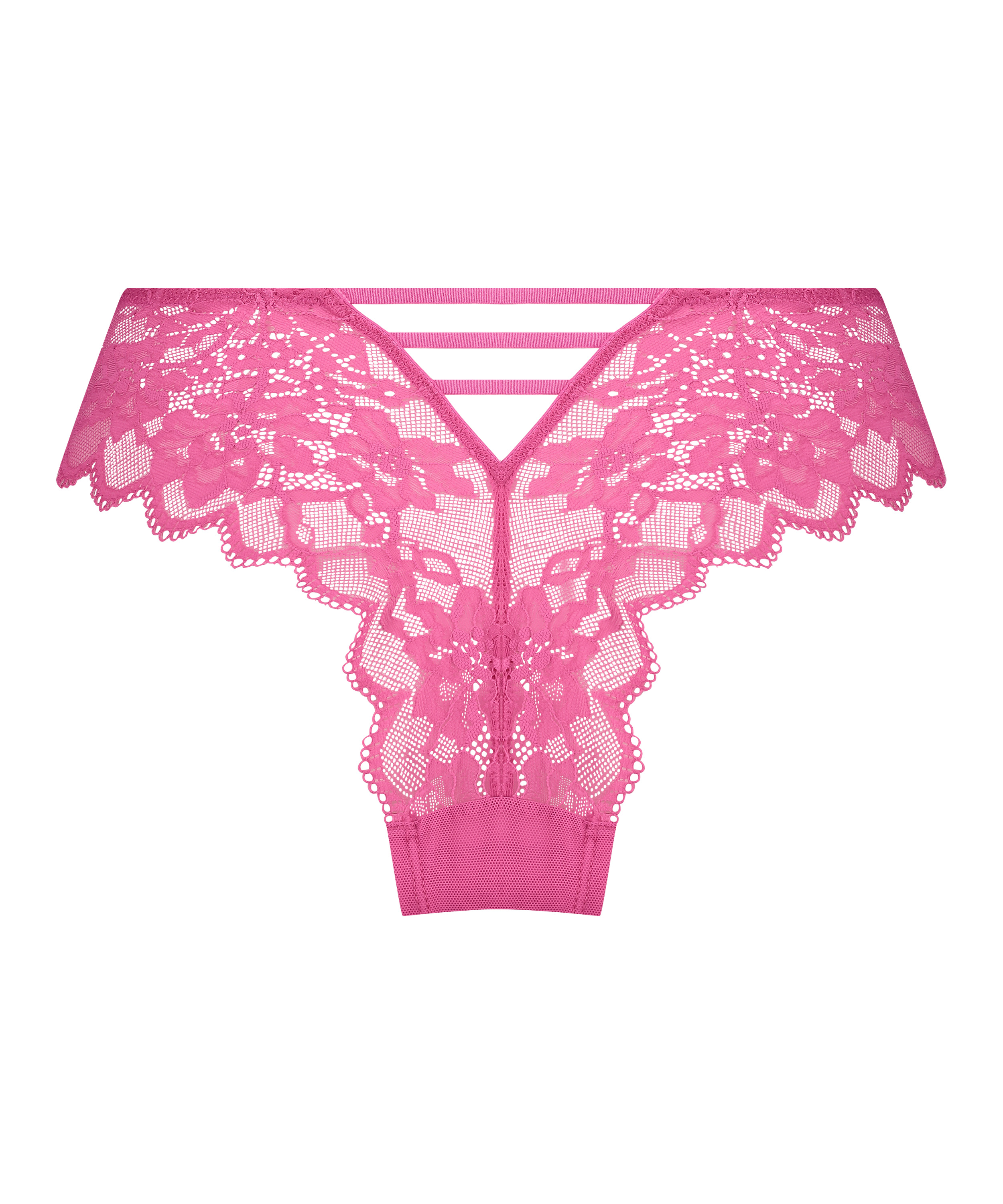 ¡Esta brasileña es lo más! ¡Los detalles de tiras en combinación con el bonito encaje completarán tu look! Combínala con tu sujetador favorito en el mismo color.