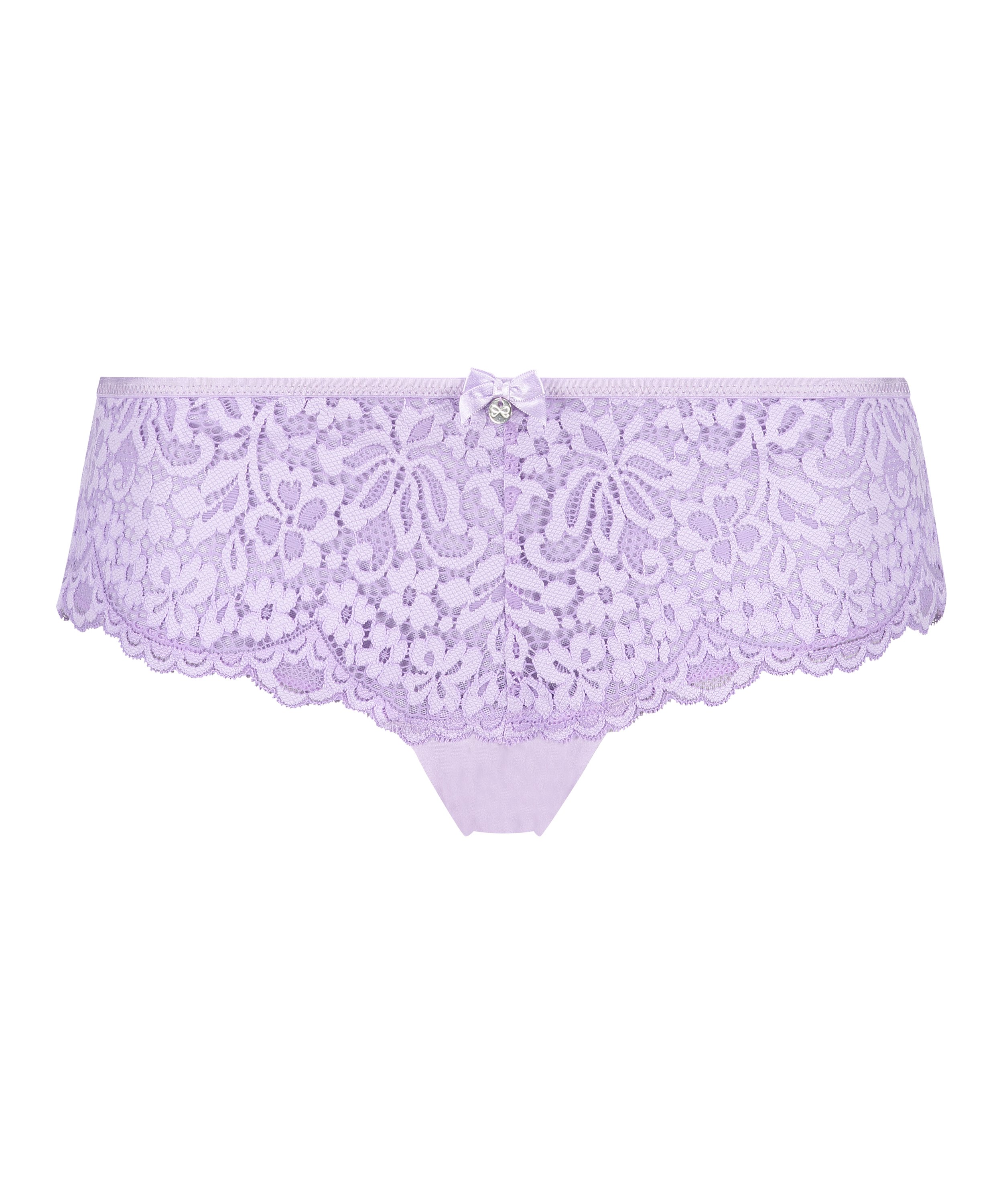 ¡Completa tu conjunto de lencería con este brasileño! Está confeccionado con un bonito encaje y tiene un divertido lazo en la parte delantera. ¡Combínalo con el sujetador a juego para obtener un conjunto completo!