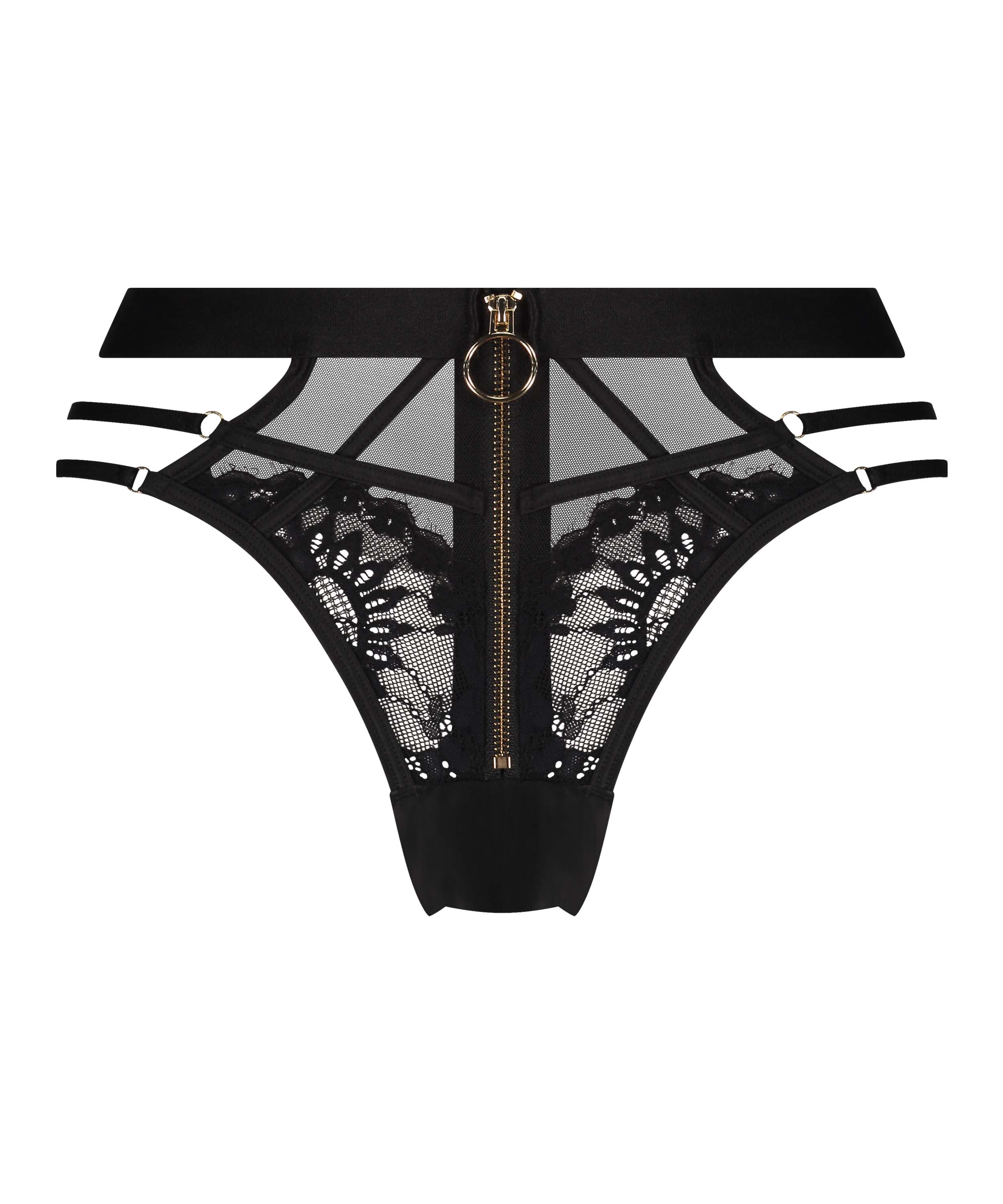 Completa tu sugerente conjunto de lencería con este sexi braguita brasileña. Tiene una entrepierna abierta y está provisto de una cremallera y encaje para conseguir un toque seductor adicional. Forma parte de la colección Private.