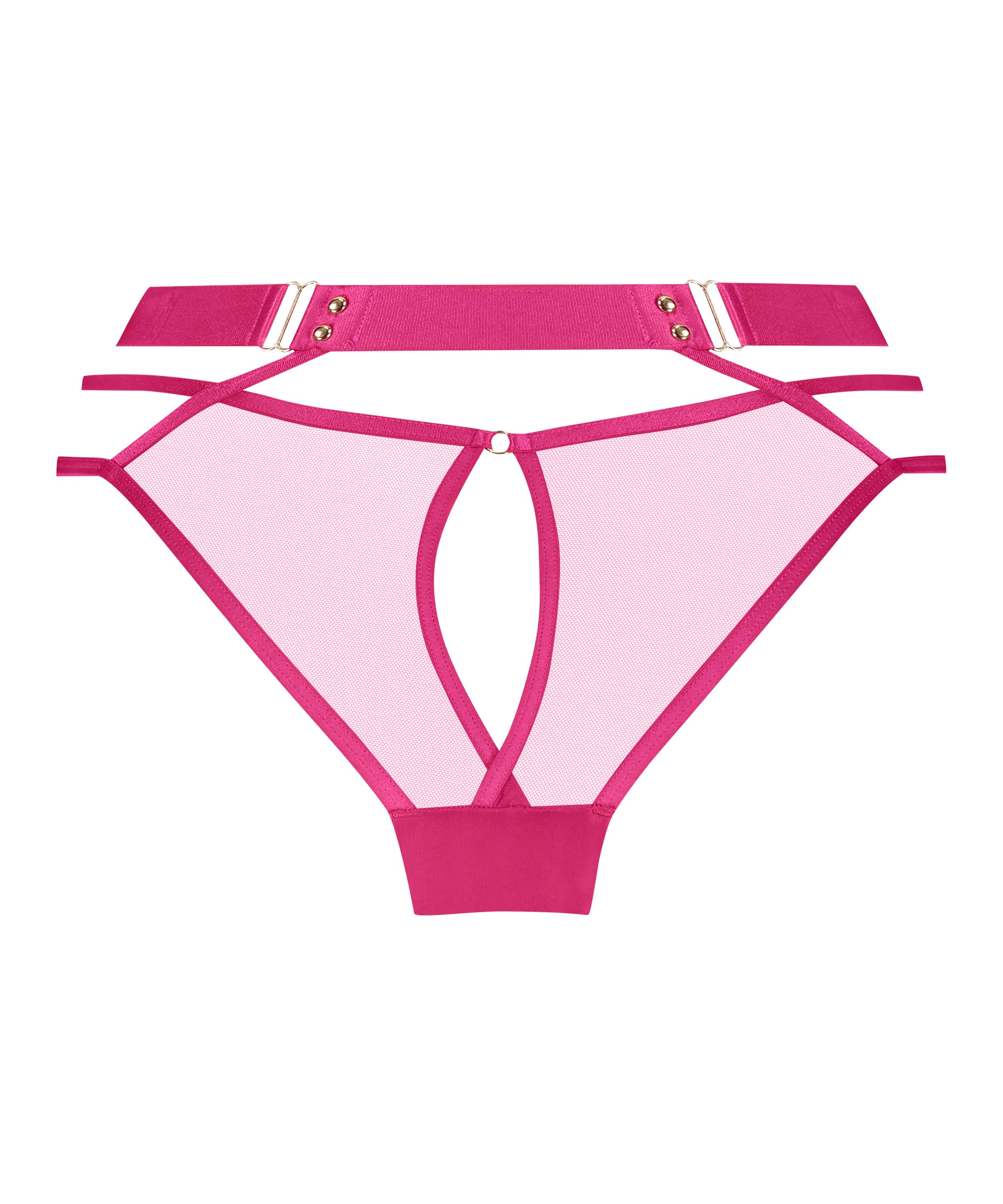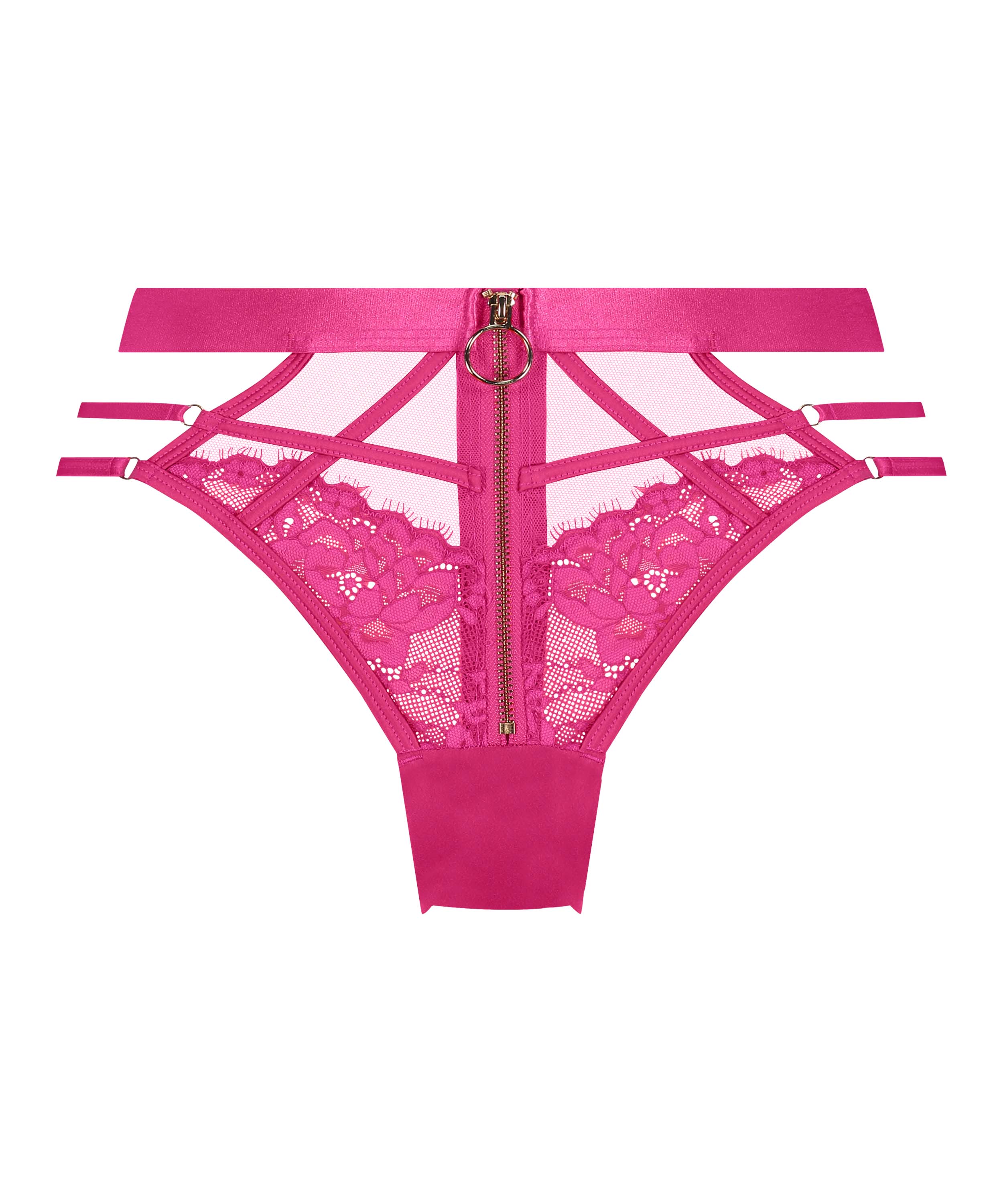 Completa tu sugerente conjunto de lencería con este sexi braguita brasileña. Tiene una entrepierna abierta y está provisto de una cremallera y encaje para conseguir un toque seductor adicional. Forma parte de la colección Private.