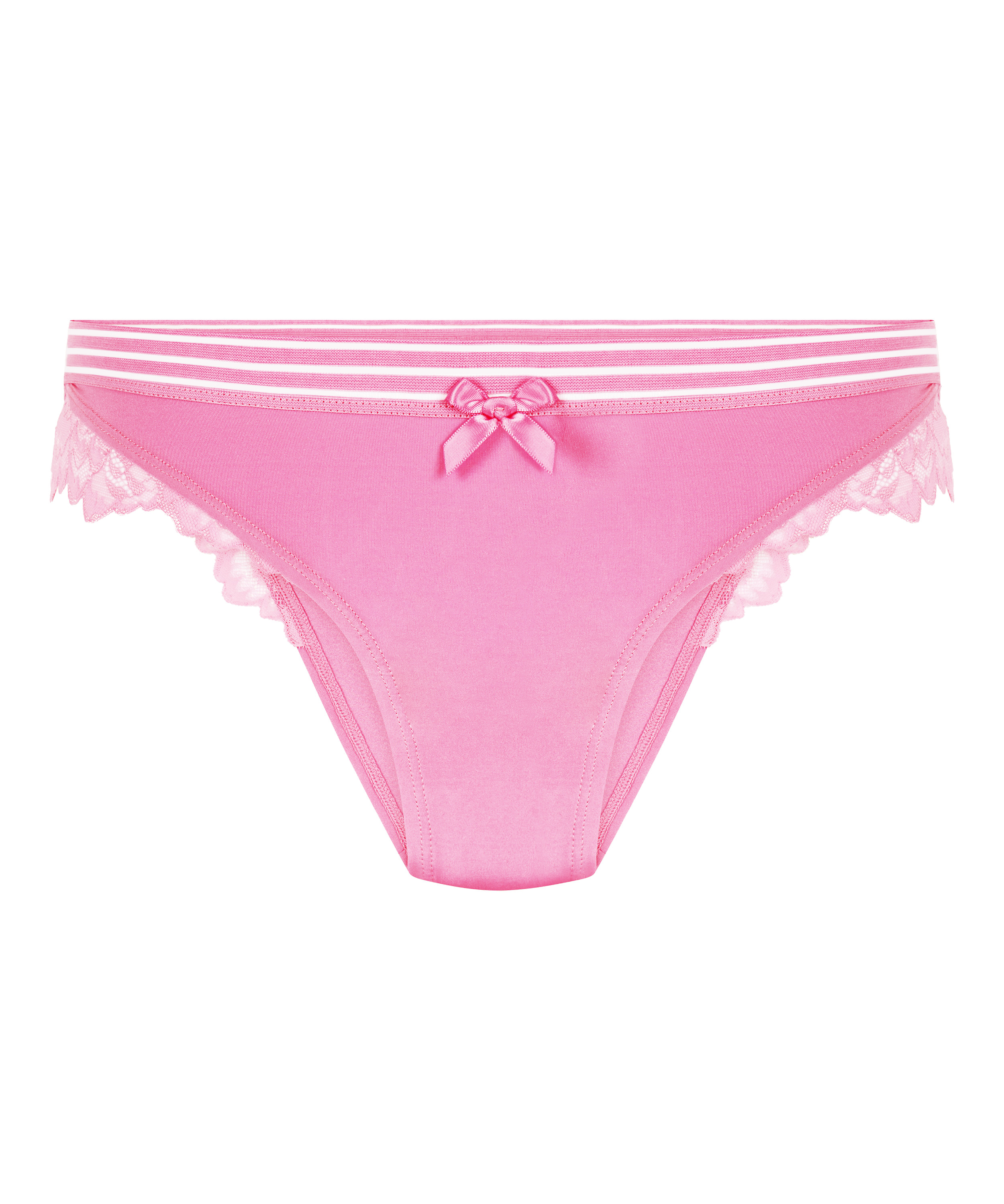 Esta braguita brasileña es cómoda ¡y además muy bonita! La brasileña está rematada con encaje y lleva un lazo en la parte delantera. Combínala con tu sujetador favorito para lucir un look completo.