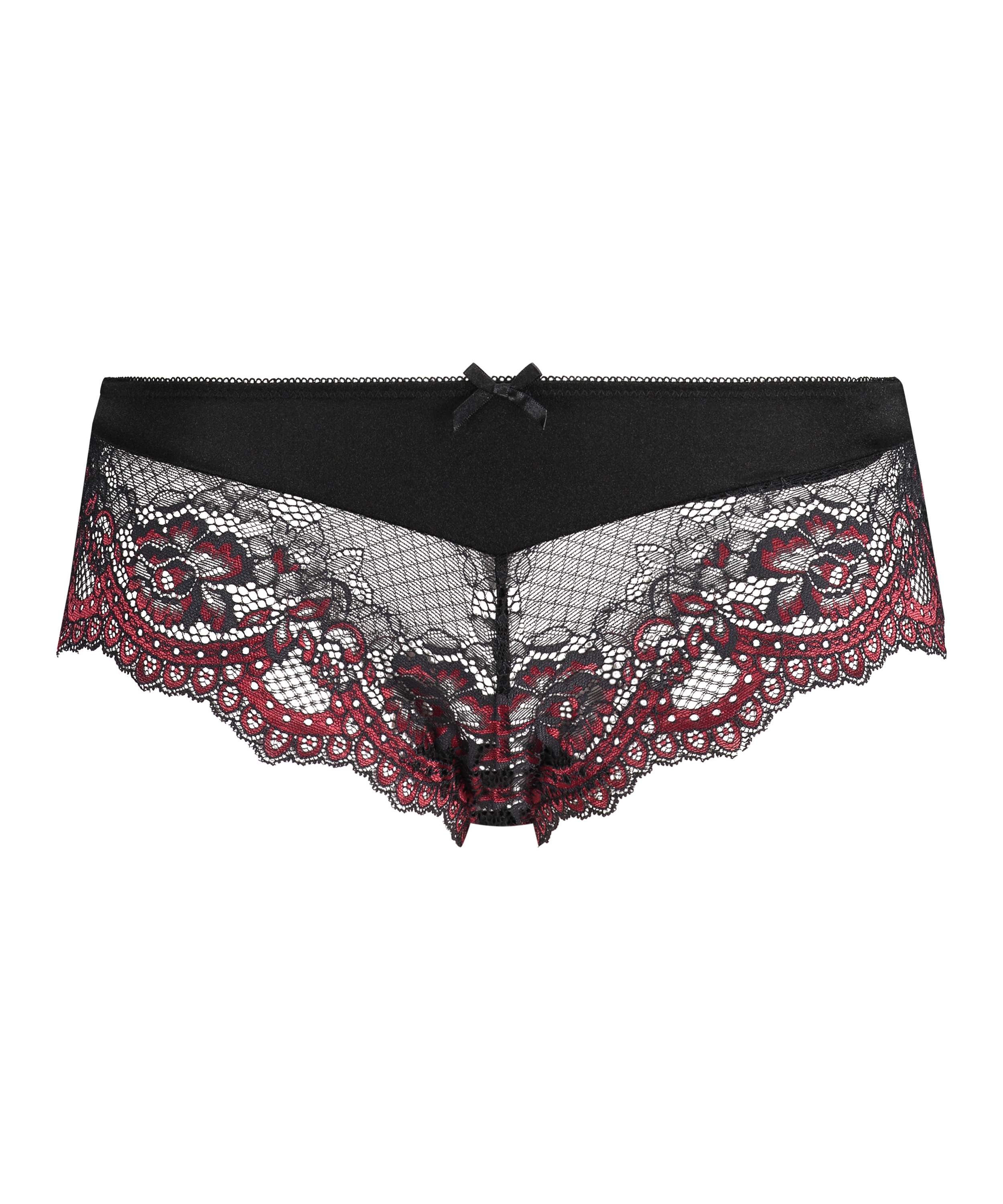 ¡Siéntete fantástica con esta preciosa braguita brasileña de estilo short! Contiene mucho encaje con estampado floral. Tiene un lazo en la parte delantera.¡Fácil de combinar con sujetadores del mismo color!