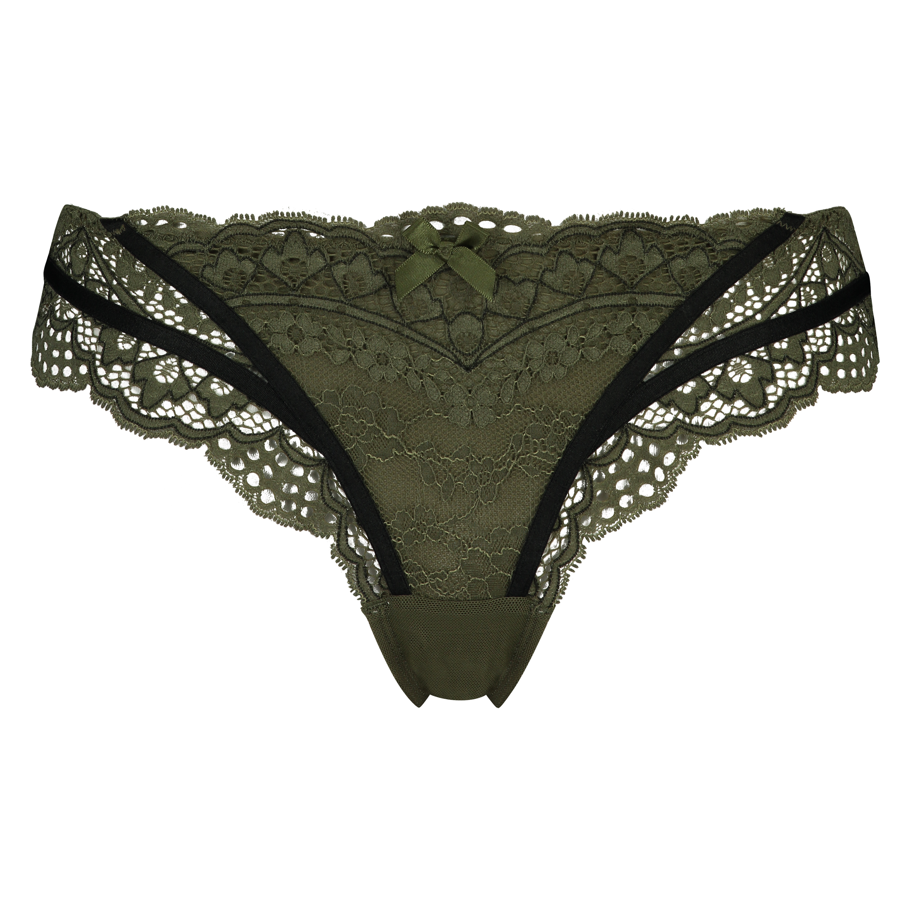 Esta braguita brasileña tiene un tejido de encaje en la parte delantera. ¡En la parte lateral tiene finas cintas que aportan a la prenda un efecto seductor! ¡Combínalo con uno de los sujetadores a juego!