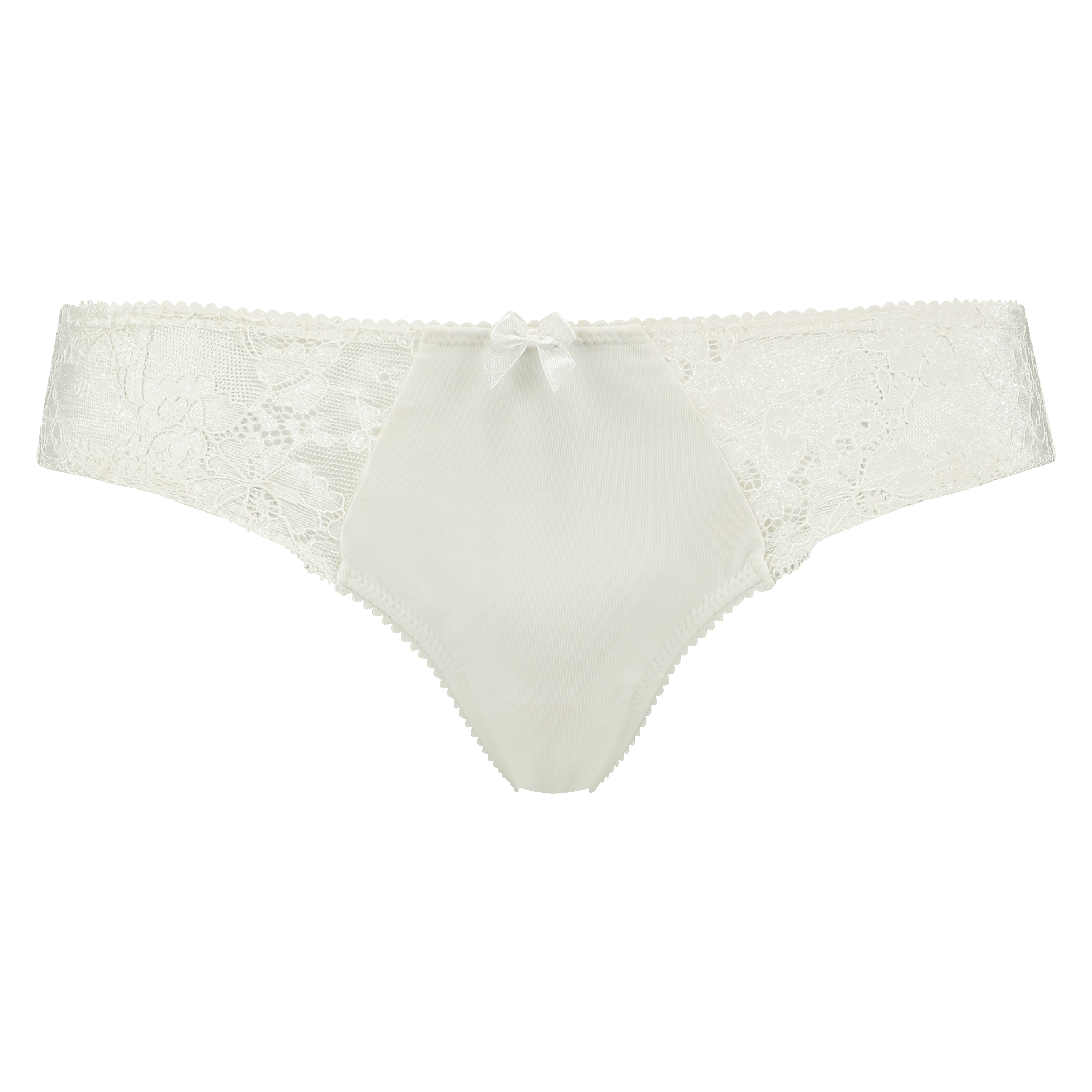 These pretty Brazilian knickers are finished with lace with a bow detail. The back is made from semi-transparent fabric with a scalloped edge.