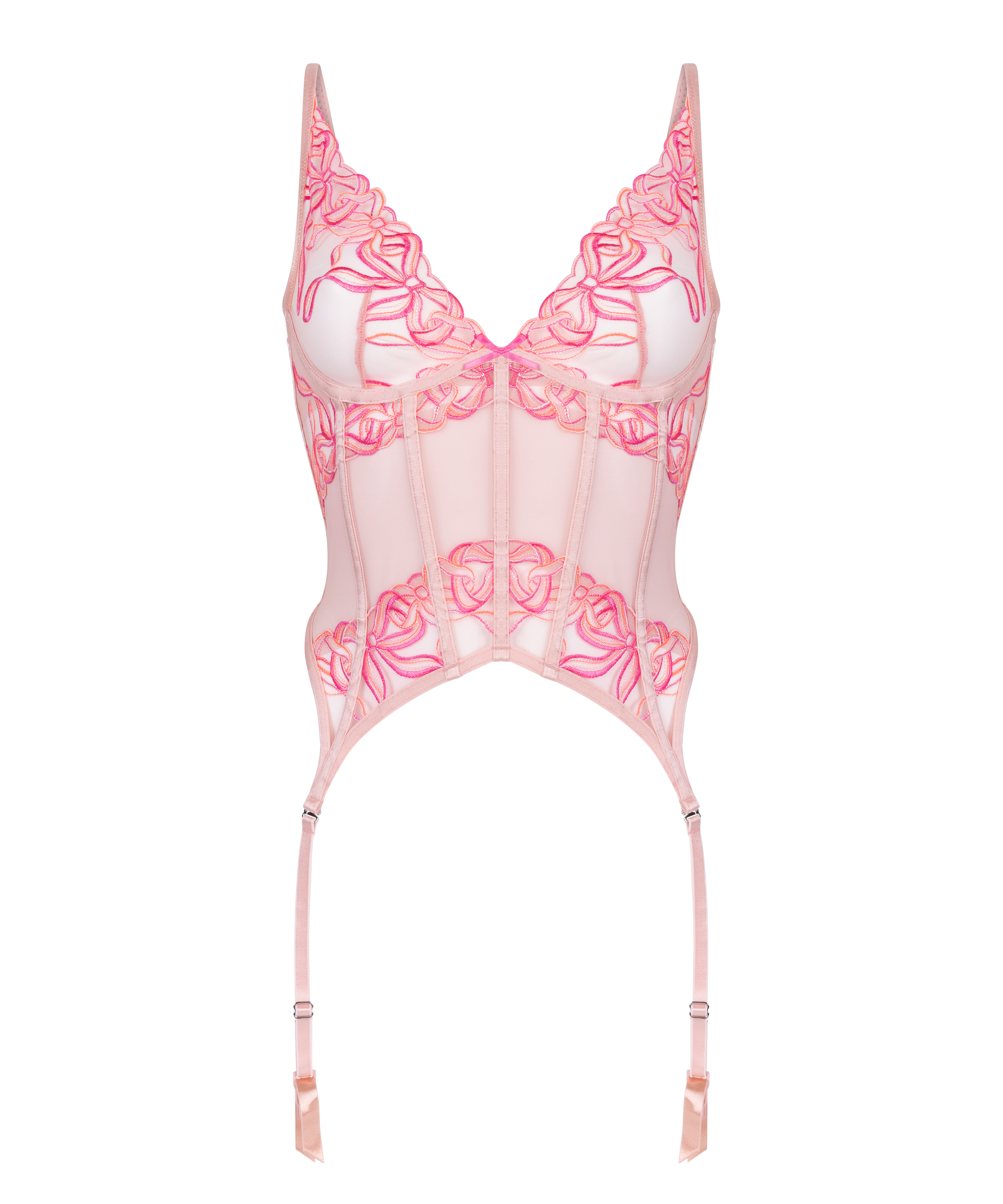 ¡Haz una declaración audaz con este espectacular bustier de encaje! Los intrincados detalles de lazo y el diseño estructurado realzan tus curvas a la perfección. Con soporte de aros y tirantes para liguero, es la combinación perfecta de estilo y sensualidad. Combínalo con piezas a juego para un look que no pasa desapercibido.