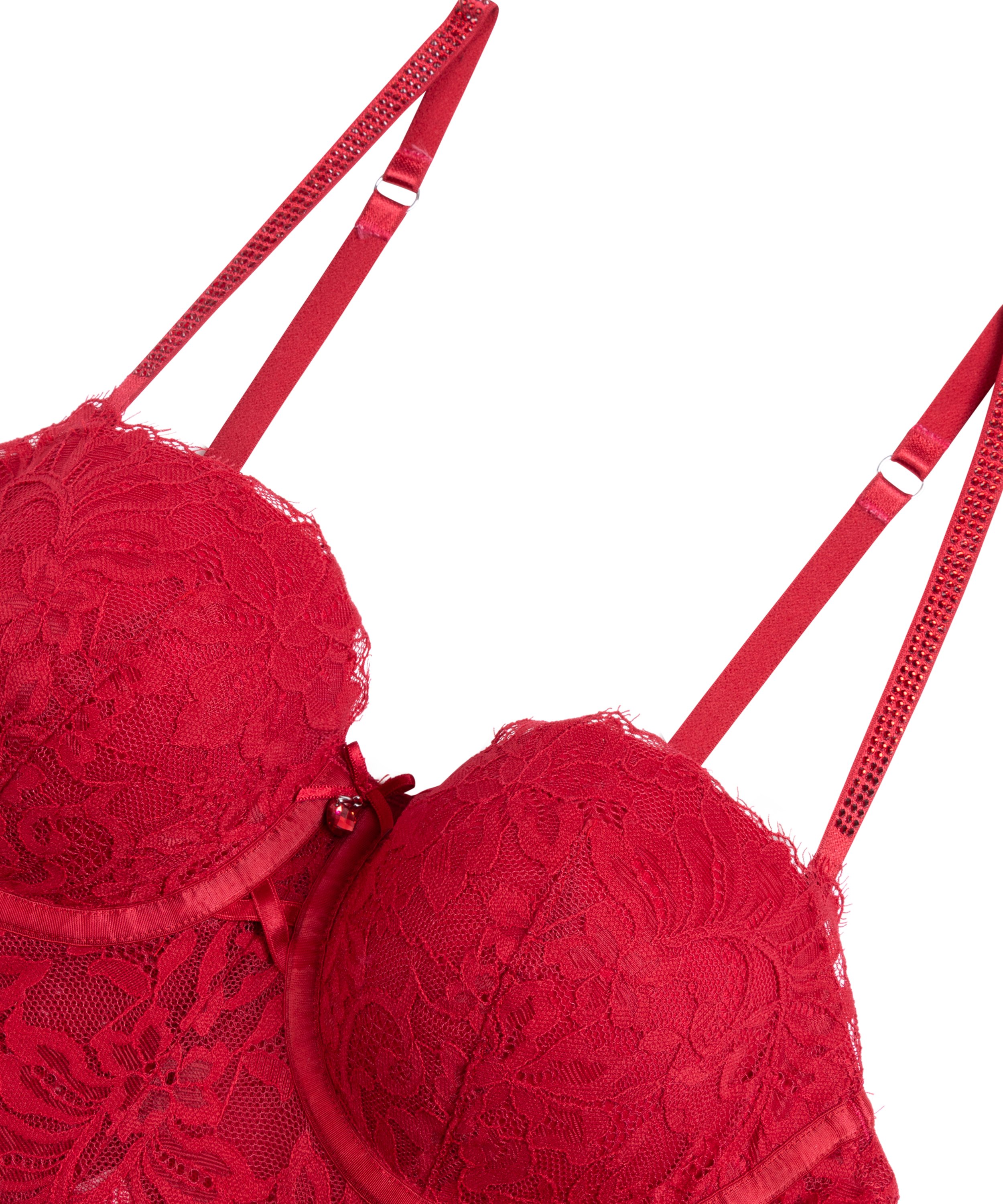 ¡Con este corpiño te sentirás elegante y serás el centro de todas las miradas! ¡El corpiño presenta detalles sexis como el encaje y la elegante pedrería! Tiene tirantes extraíbles para que puedas usar este corsé sin tirantes. Los tirantes de liguero también se pueden quitar, ¡lo que hace que esta pieza sea súper versátil! Combínalo con un par de bonitas medias y una braguita a juego.