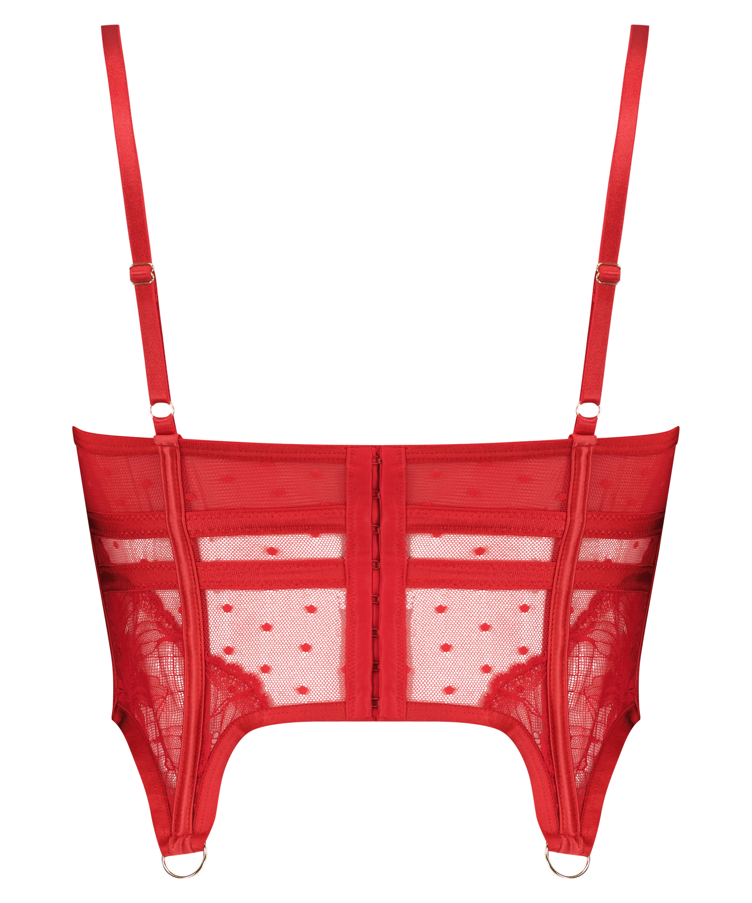 ¡Siéntete sexy con este precioso bustier!Con cómodas copas sin relleno con detalles recortados y de tiras. Es de gran apoyo debido al deshuesado frontal, lateral y posterior que te hará lucir increíble. Tiene un aspecto semitransparente completo de encaje y malla, y potencial para sujetar correas de calcetería. ¡Completa el conjunto con las braguitas a juego! Forma parte de la Colección Private.