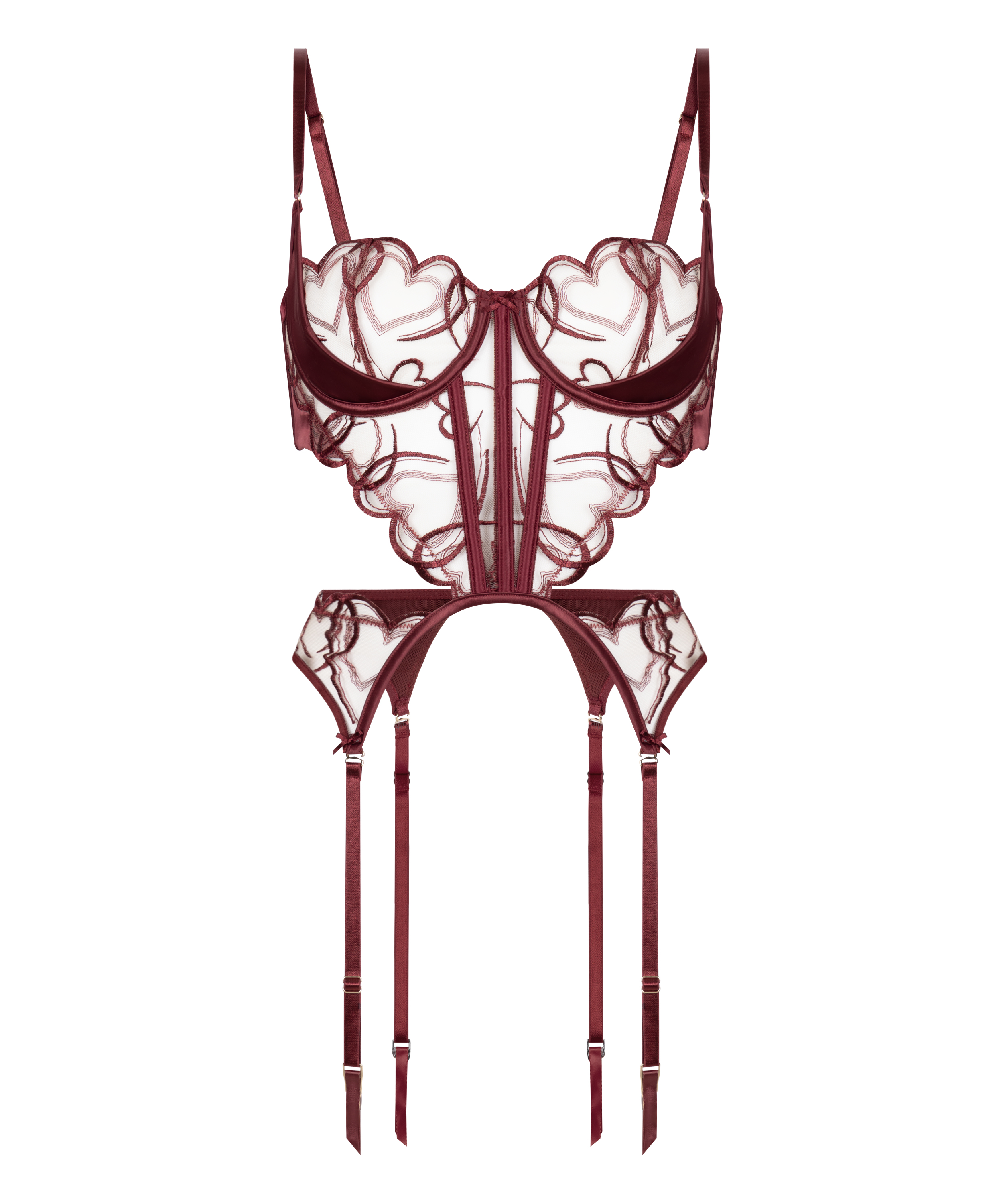 Romántico y estructurado, este bustier de satén está adornado con un delicado encaje en forma de corazón para un look femenino y de ensueño. Sin relleno y con aros, ofrece una forma natural con un soporte elegante. El suave satén aporta una sensación de lujo, mientras que la silueta esculpida realza tus curvas. Perfecto para llevar a capas o solo, para un estilo atrevido y dulce a la vez.