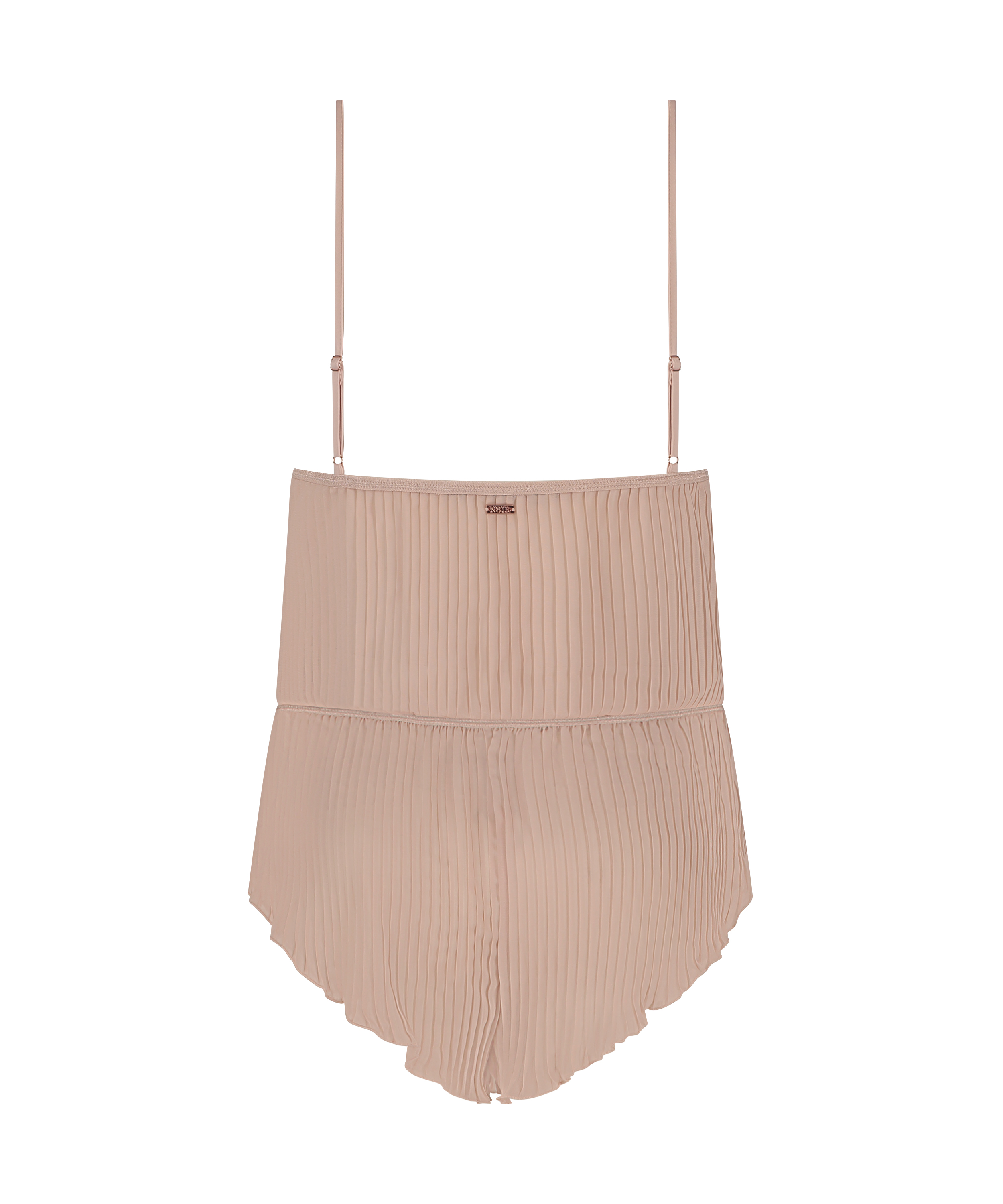 ¡Luce ideal con este bonito conjunto de pijama! Este precioso conjunto de cami plisado de gasa contiene encaje y tiene tirantes delgados. Forma parte de la colección Noir.