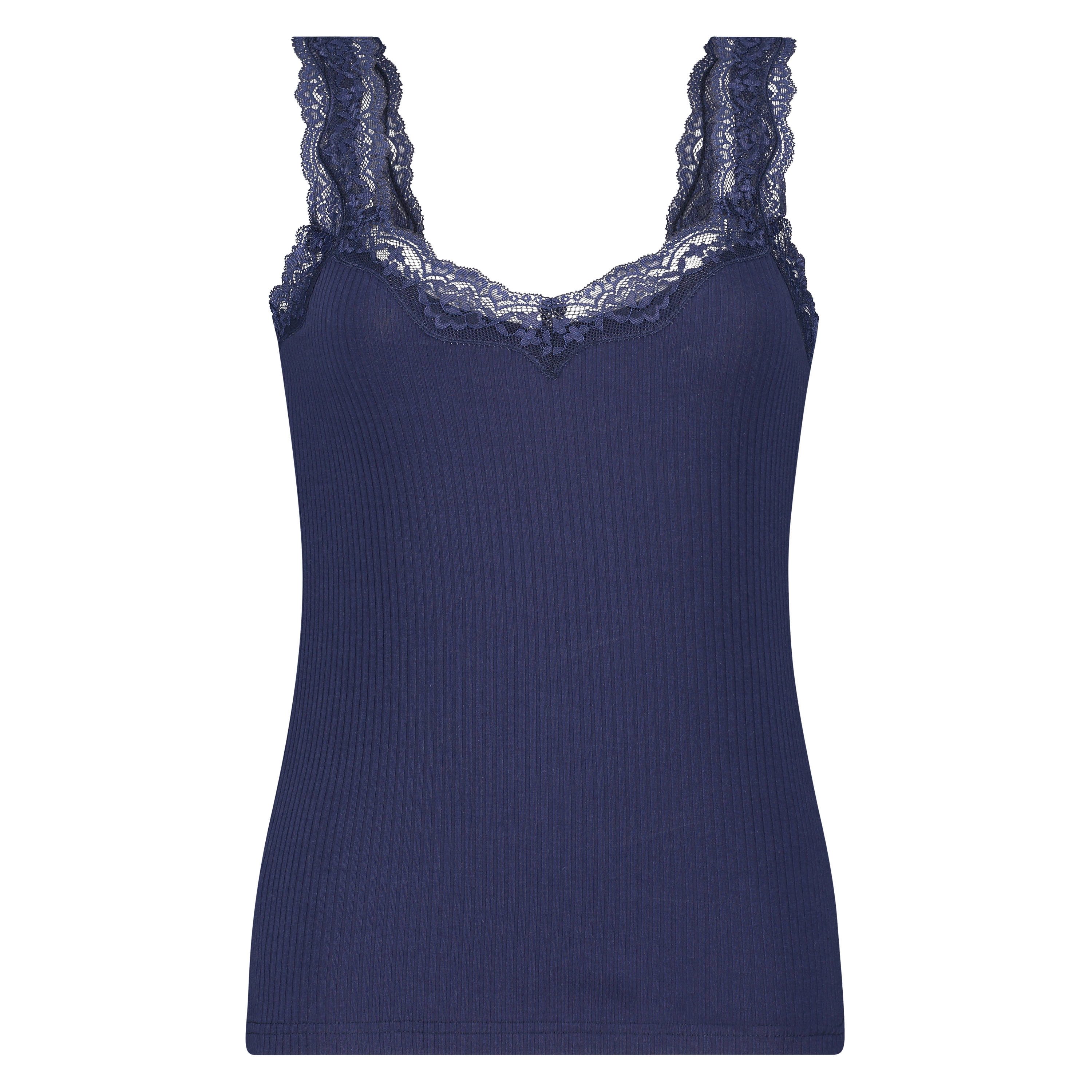 Esta cami está confeccionada en un patrón de costillas. En la parte superior, tiene un acabado con detalles de encaje. ¡Combínala con uno de los artículos a juego!
