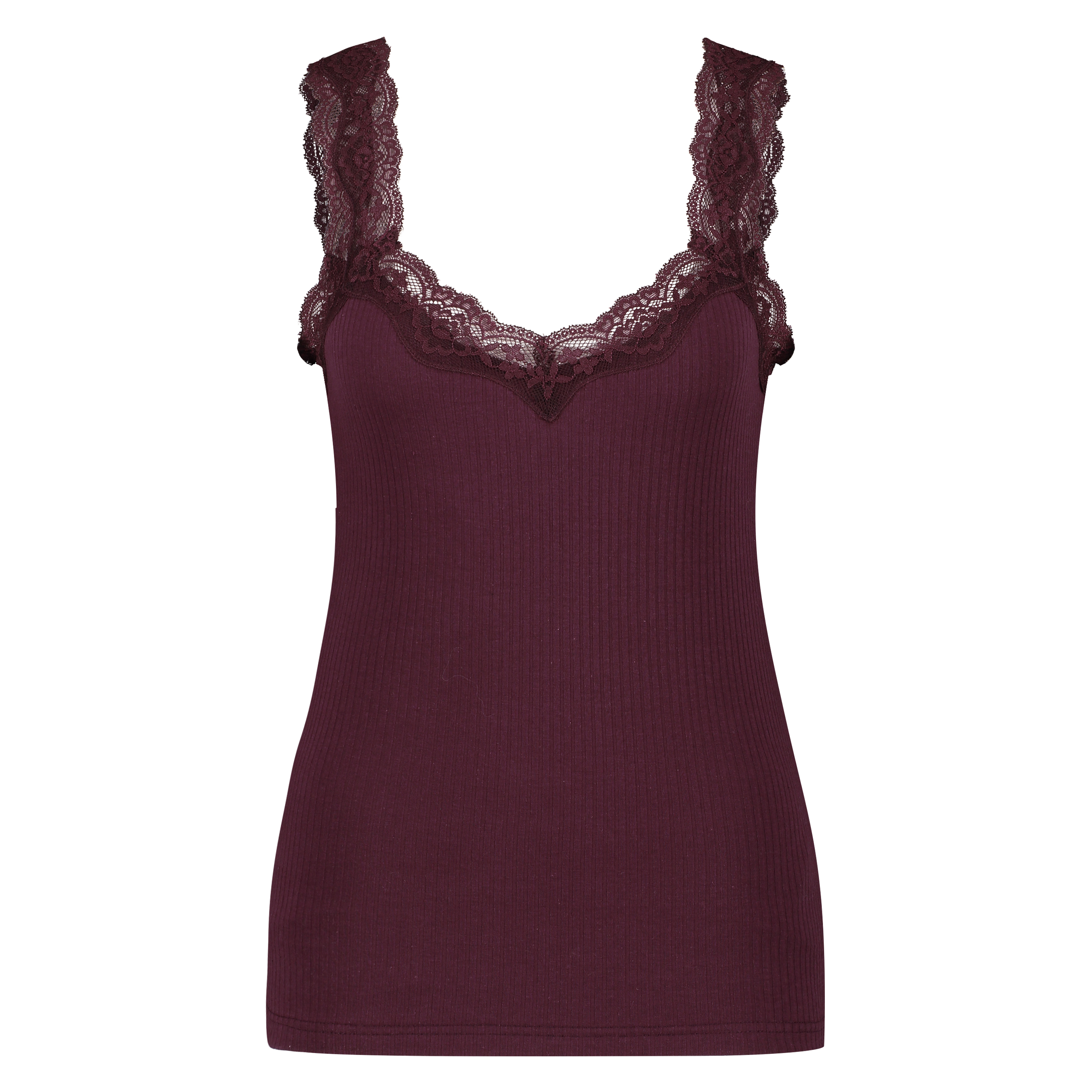 Esta cami está confeccionada en un patrón de costillas. En la parte superior, tiene un acabado con detalles de encaje. ¡Combínala con uno de los artículos a juego!