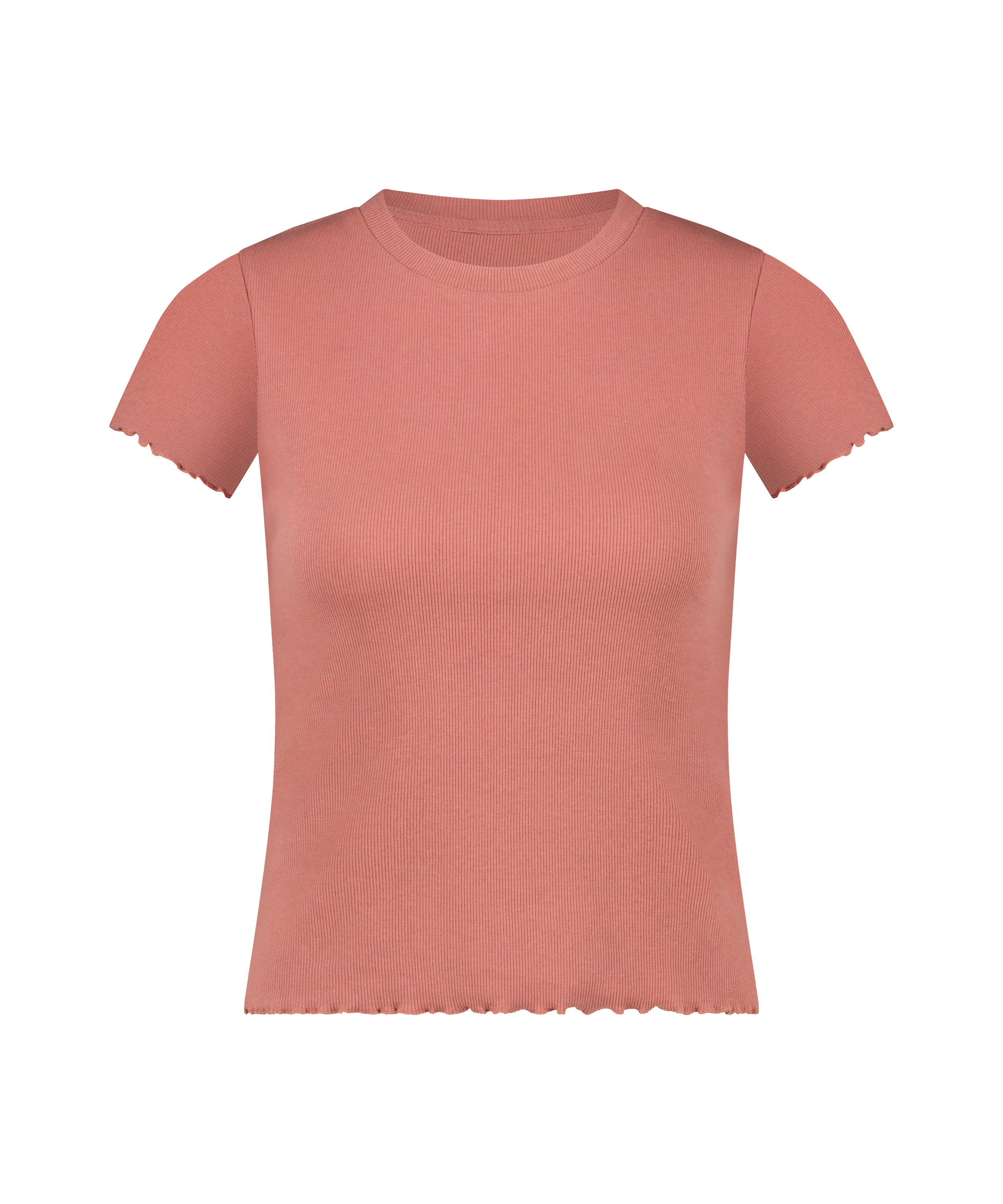 ¡Esta camiseta es súper cómoda! Está hecha de hermosos materiales elásticos de canalé y algodón y tiene lindos detalles en las mangas. ¡Combínala con artículos a juego para un conjunto fantástico!