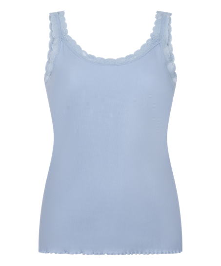 Camiseta de Tirantes de Punto Canalé con Encaje - Azul