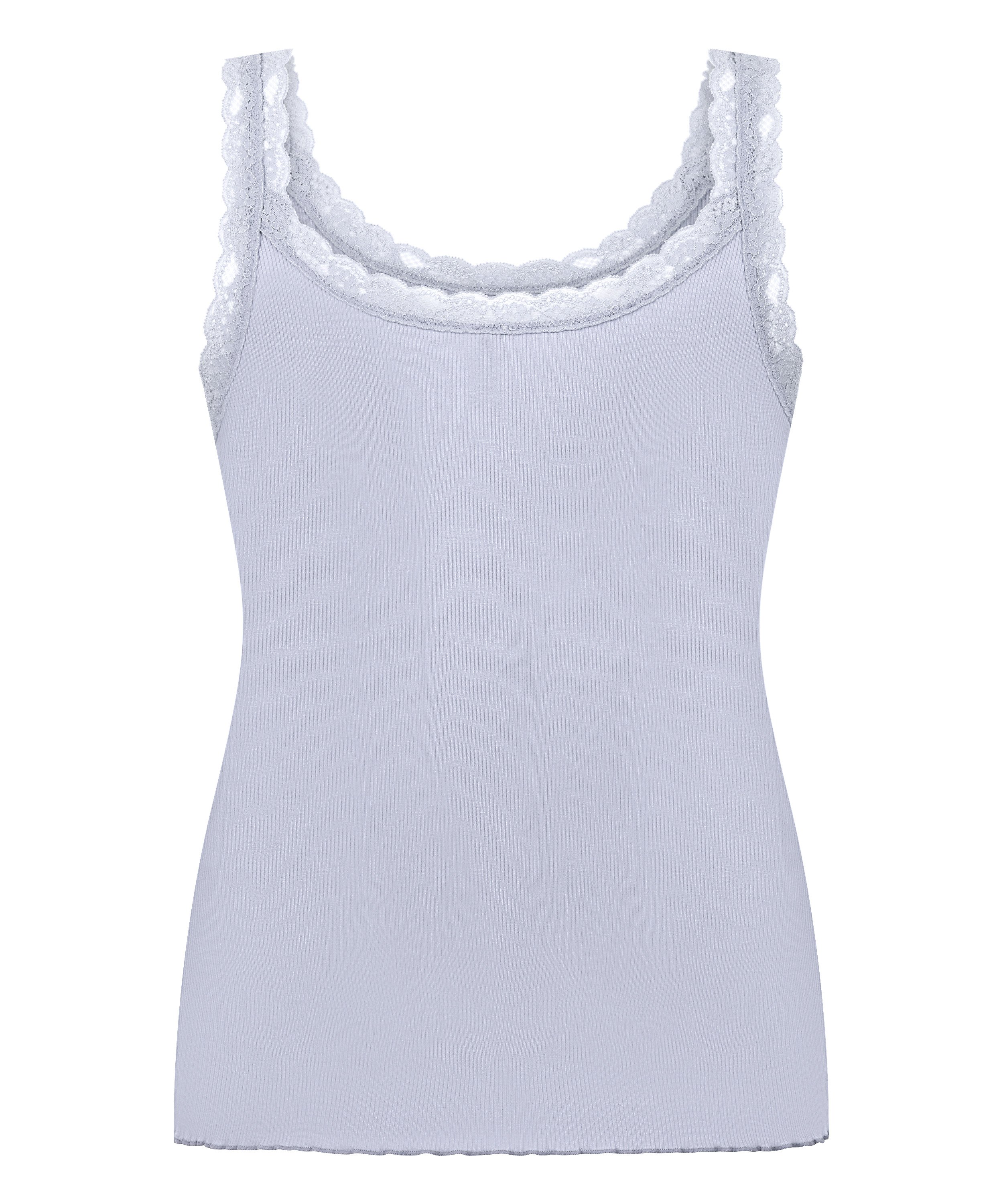 Agrega un toque de elegancia a tus básicos de pijama diarios. Confeccionada con tejido canalé suave y elástico que se ajusta cómodamente al cuerpo, brindando una silueta favorecedora y ceñida. El encaje añade un detalle femenino y romántico que eleva esta prenda sencilla. Perfecta para descansar o dormir bien por la noche.