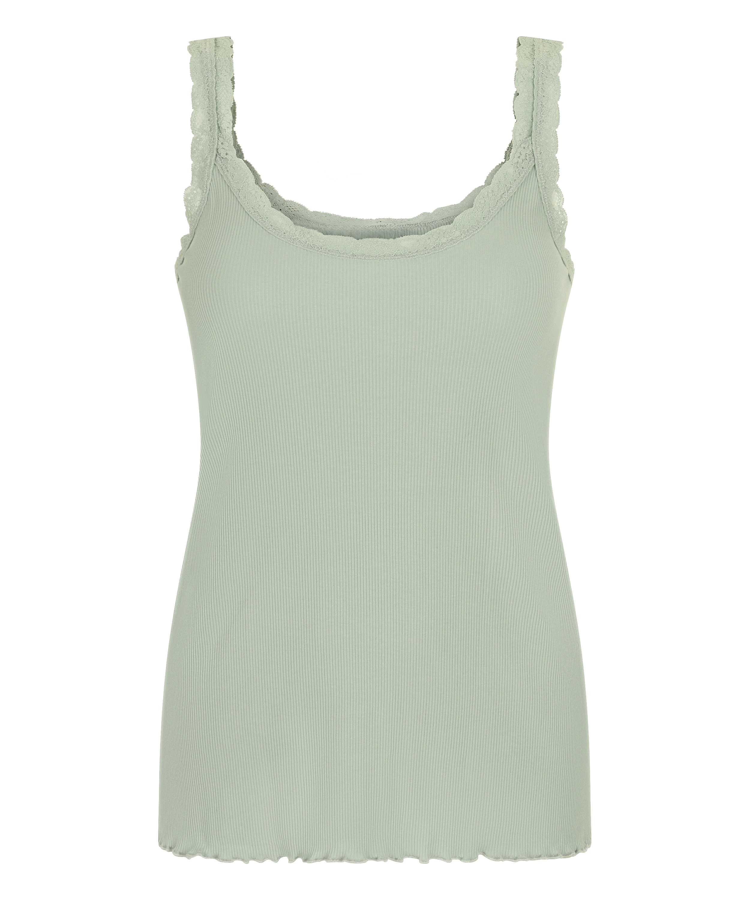 Camiseta de Tirantes de Punto Canalé con Encaje - Verde