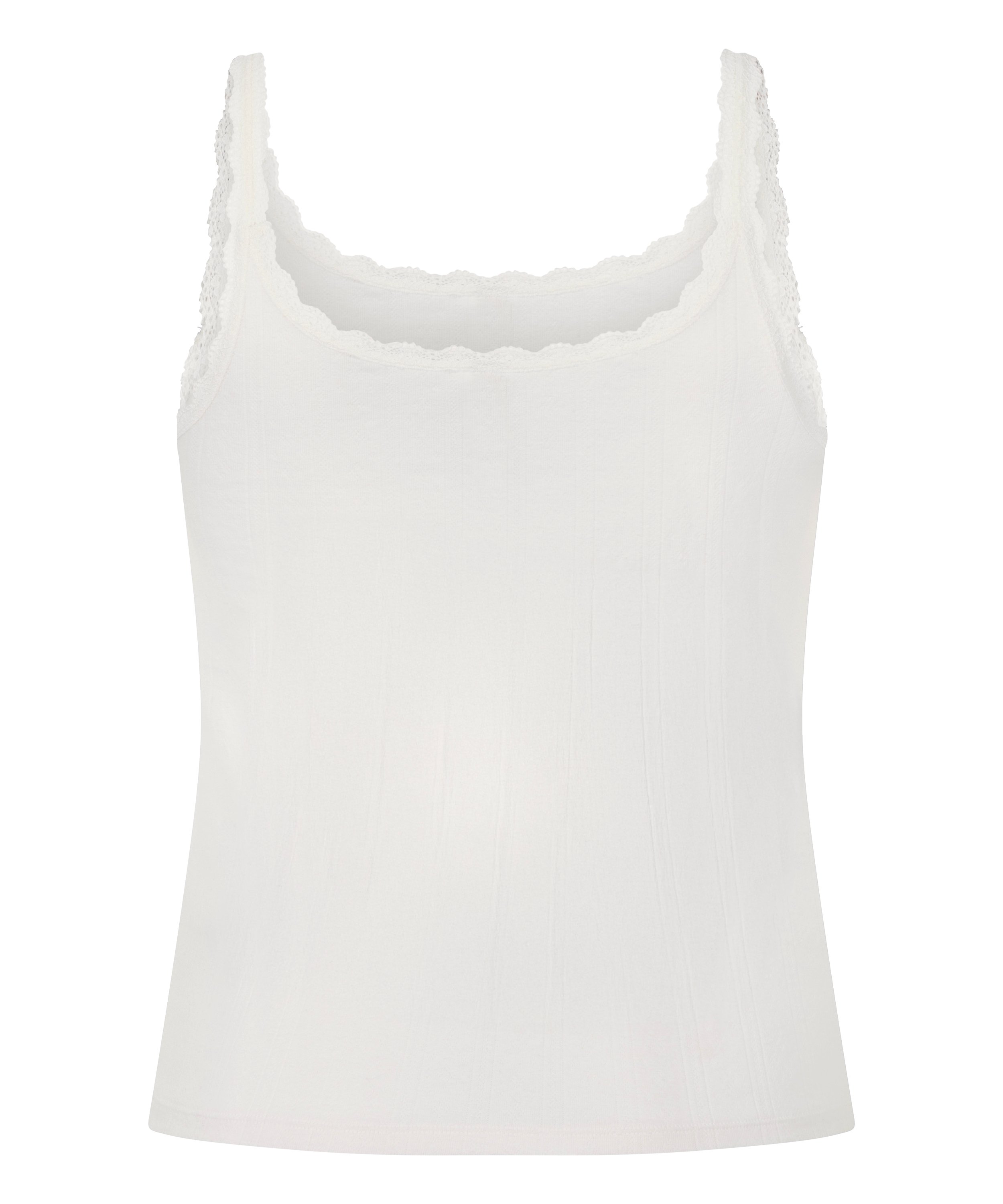 Disfruta del encanto sin esfuerzo con nuestra camiseta sin mangas, una mezcla perfecta de feminidad y comodidad. Esta camiseta sin mangas está confeccionada en suave tejido pointelle y presenta un delicado estampado texturizado que aporta una elegancia sutil. Los detalles de encaje a lo largo del escote aportan un toque romántico.
