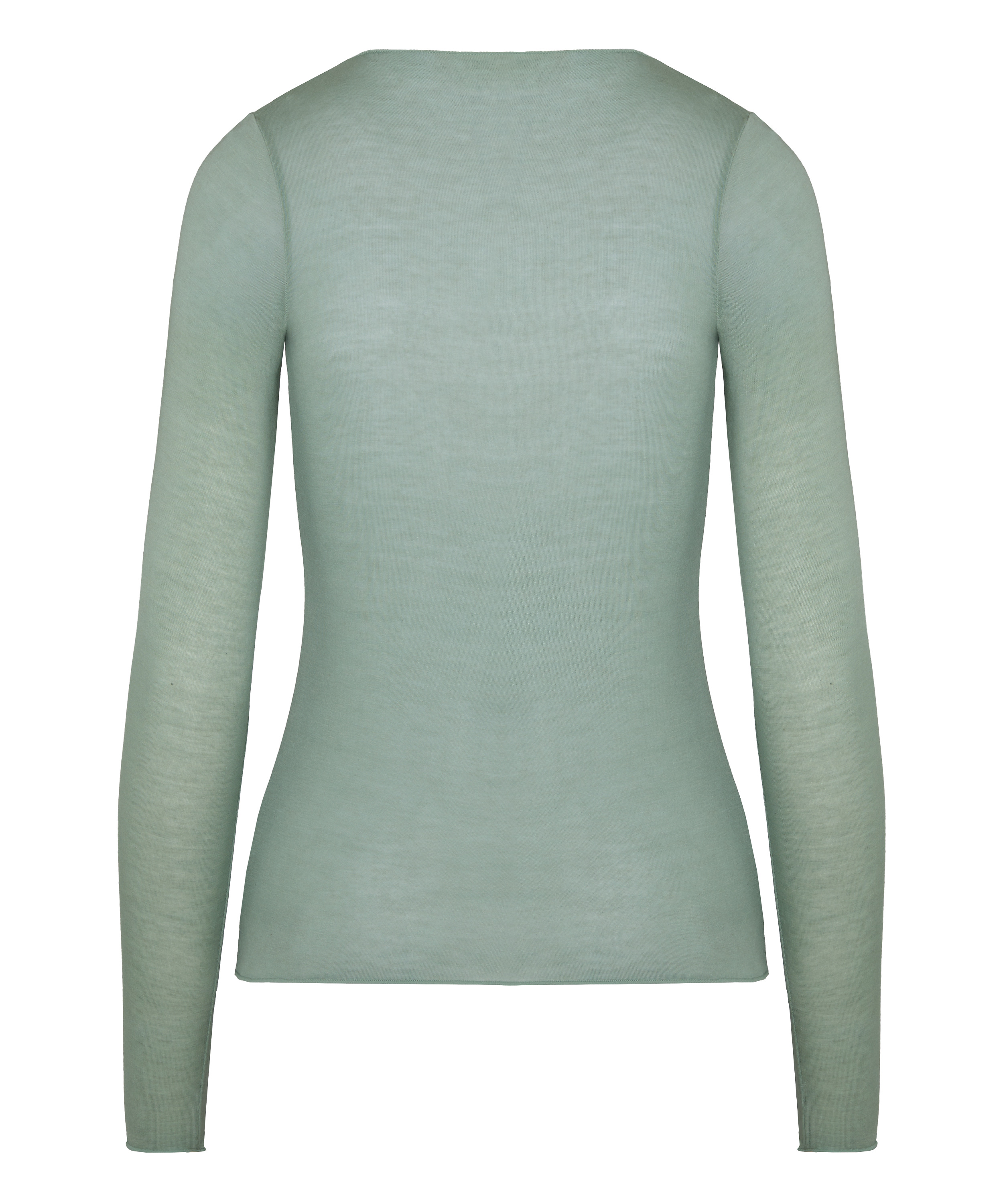 Camiseta super suave con cuello en V de encaje y cachemira - Verde