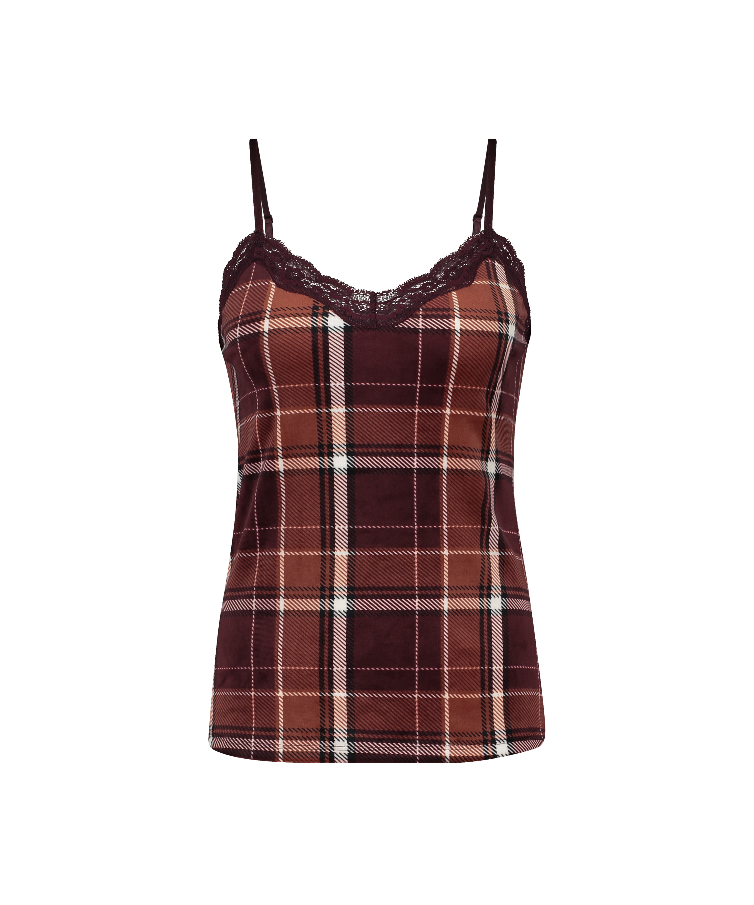 ¡Nos ha enamorado este top para dormir! El top está confeccionado en una tela de terciopelo estampada y se remata con un ribete de encaje como detalle extra. ¡Hazte con un conjunto para dormir completo combinándolo con el short!