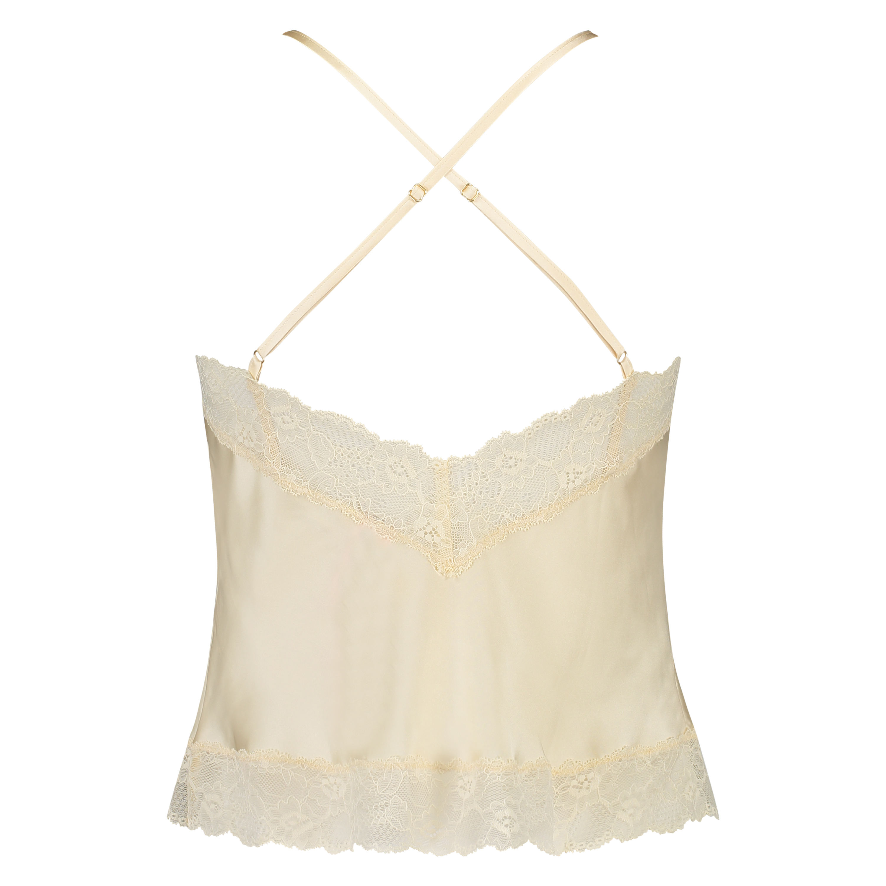 Este top está hecho de un precioso satén. En la parte superior, tiene un acabado con encaje. Las correas en la espalda son ajustables. ¡Combínalo con los artículos a juego para completar tu conjunto!