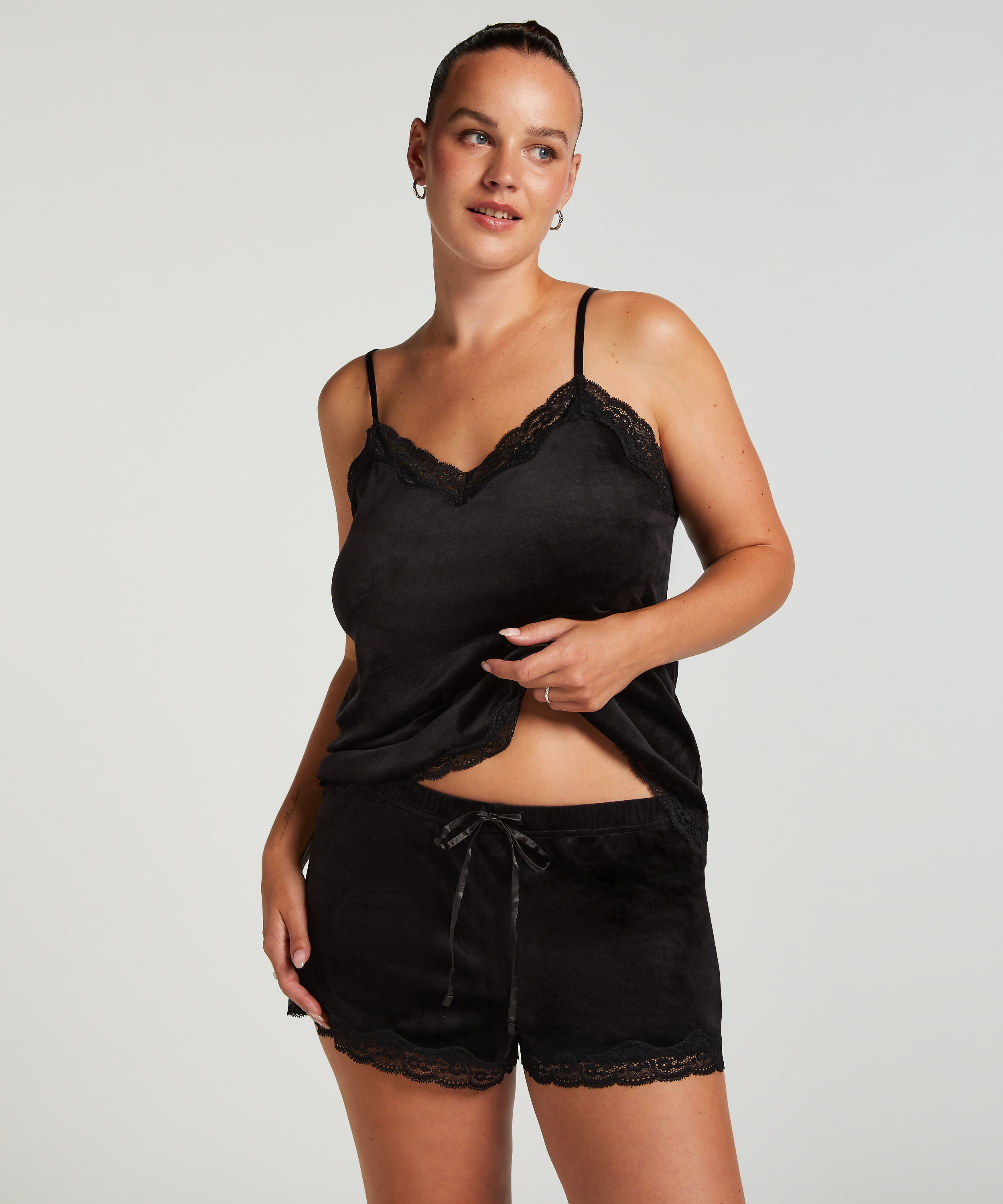 ¡Siéntete femenina y de lo más sexi con este suave top! El top está hecho de un tejido de terciopelo y tiene un acabado de encaje. Combínalo con los artículos a juego.