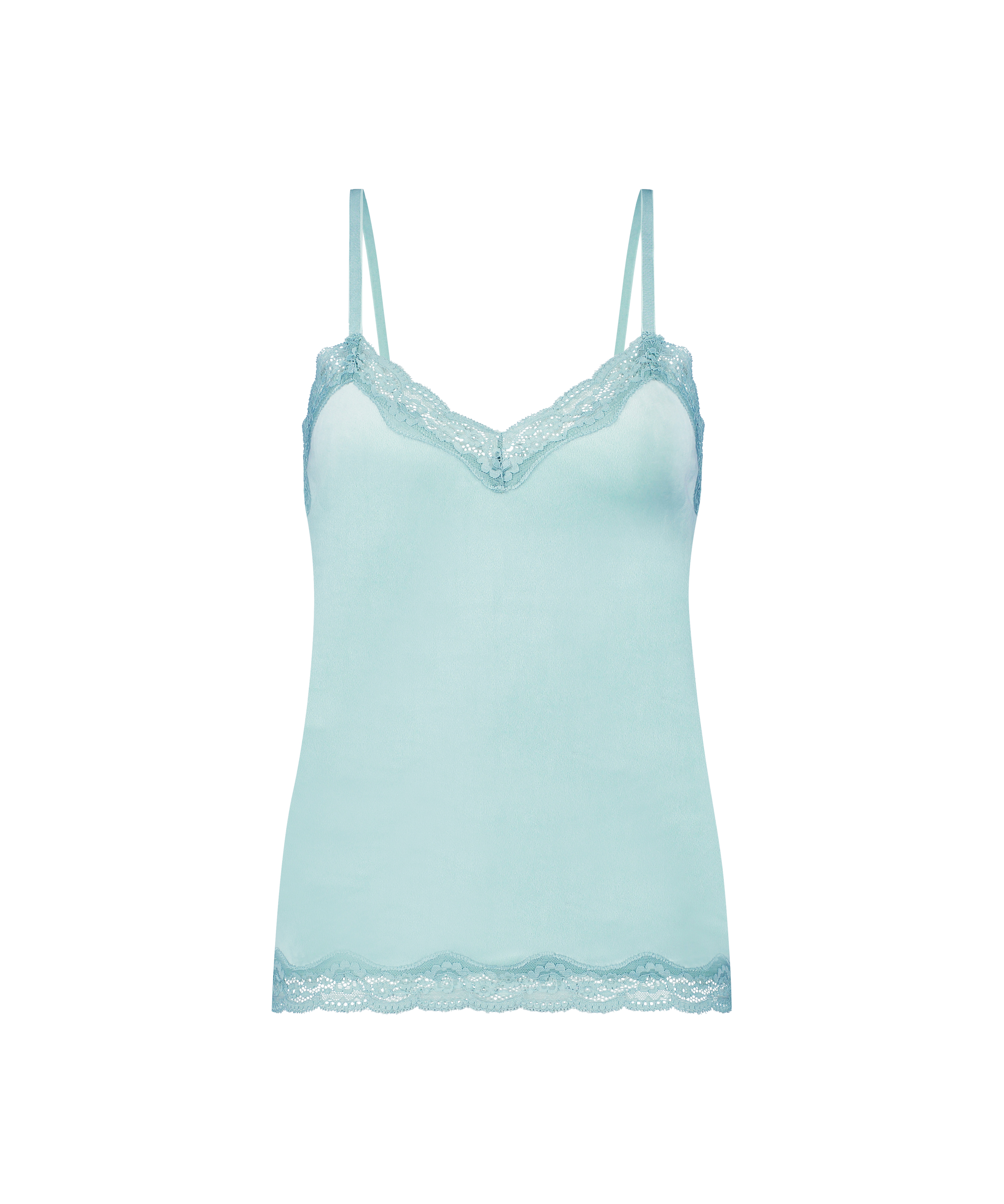 ¡Siéntete femenina y de lo más sexi con este suave top! El top está hecho de un tejido de terciopelo y tiene un acabado de encaje. Combínalo con los artículos a juego.