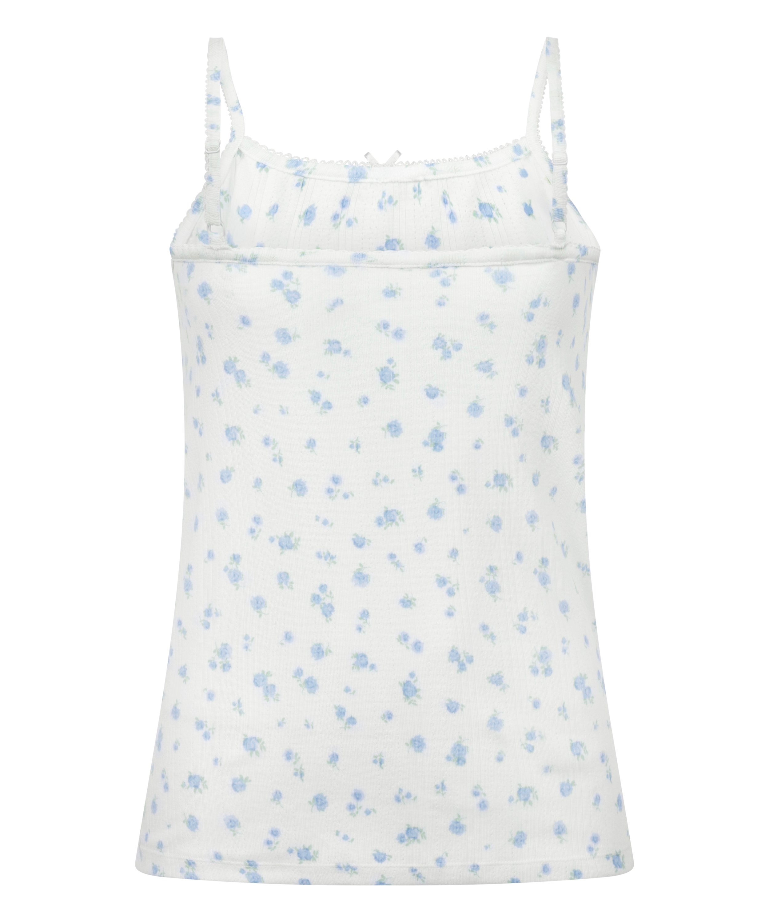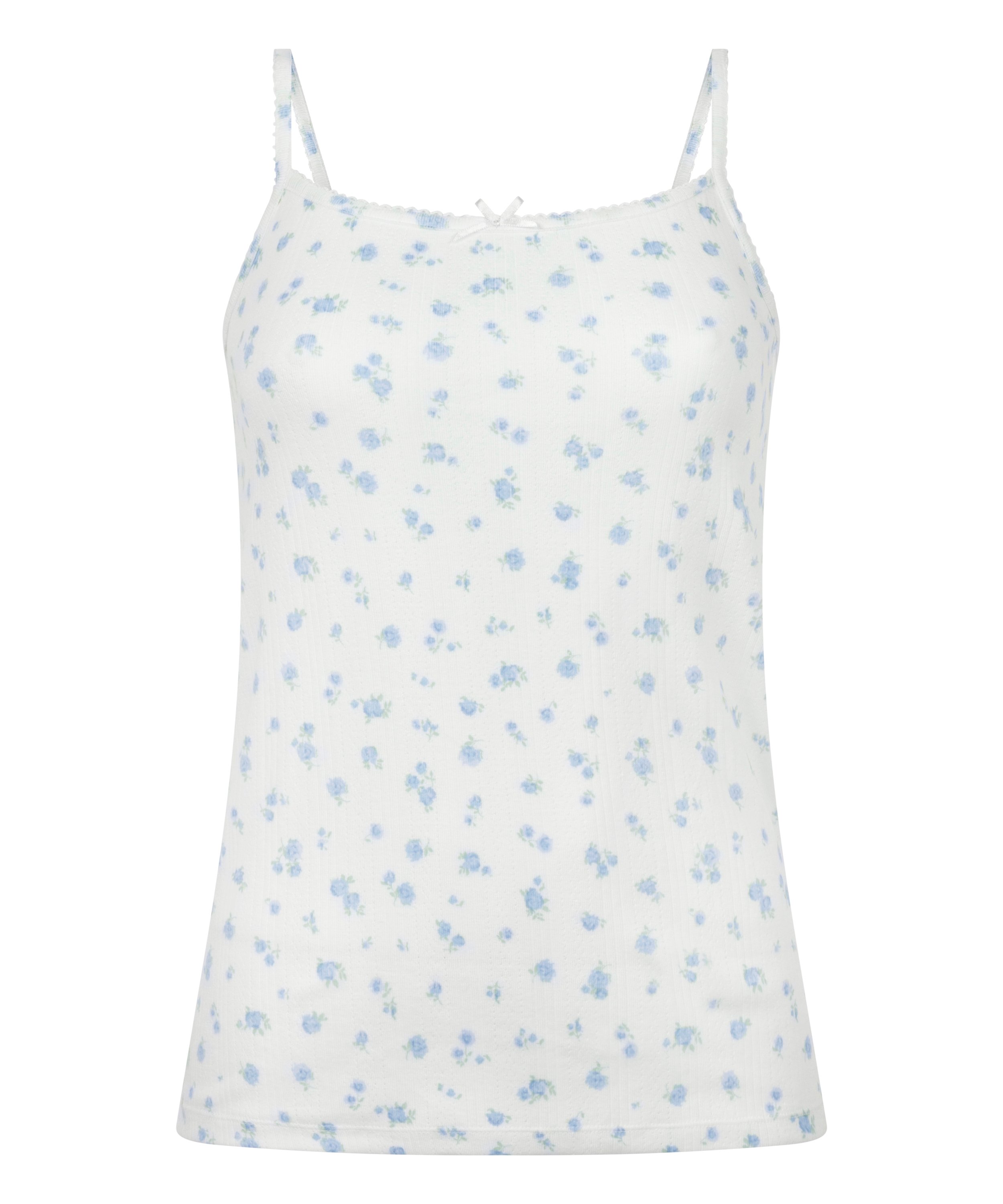 Suave, delicada y sencilla, nuestra camisola Pointelle es todo un básico de lo más práctico. Confeccionada en tejido pointelle, destaca por su sutil estampado texturizado y un lazo en el centro que le añade un toque femenino. Se puede combinar con los shorts a juego para ir a conjunto.
