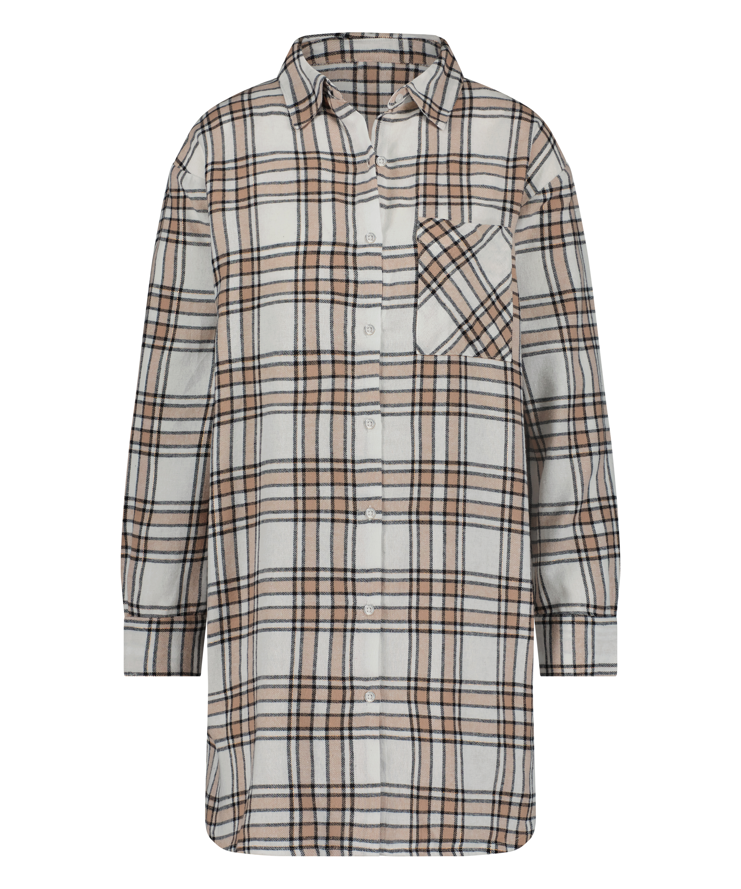 ¡Opta por la comodidad con este precioso camisón! Tiene un bonito estampado de cuadros y es extrasuave. Cuenta también con un bolsillo delantero.