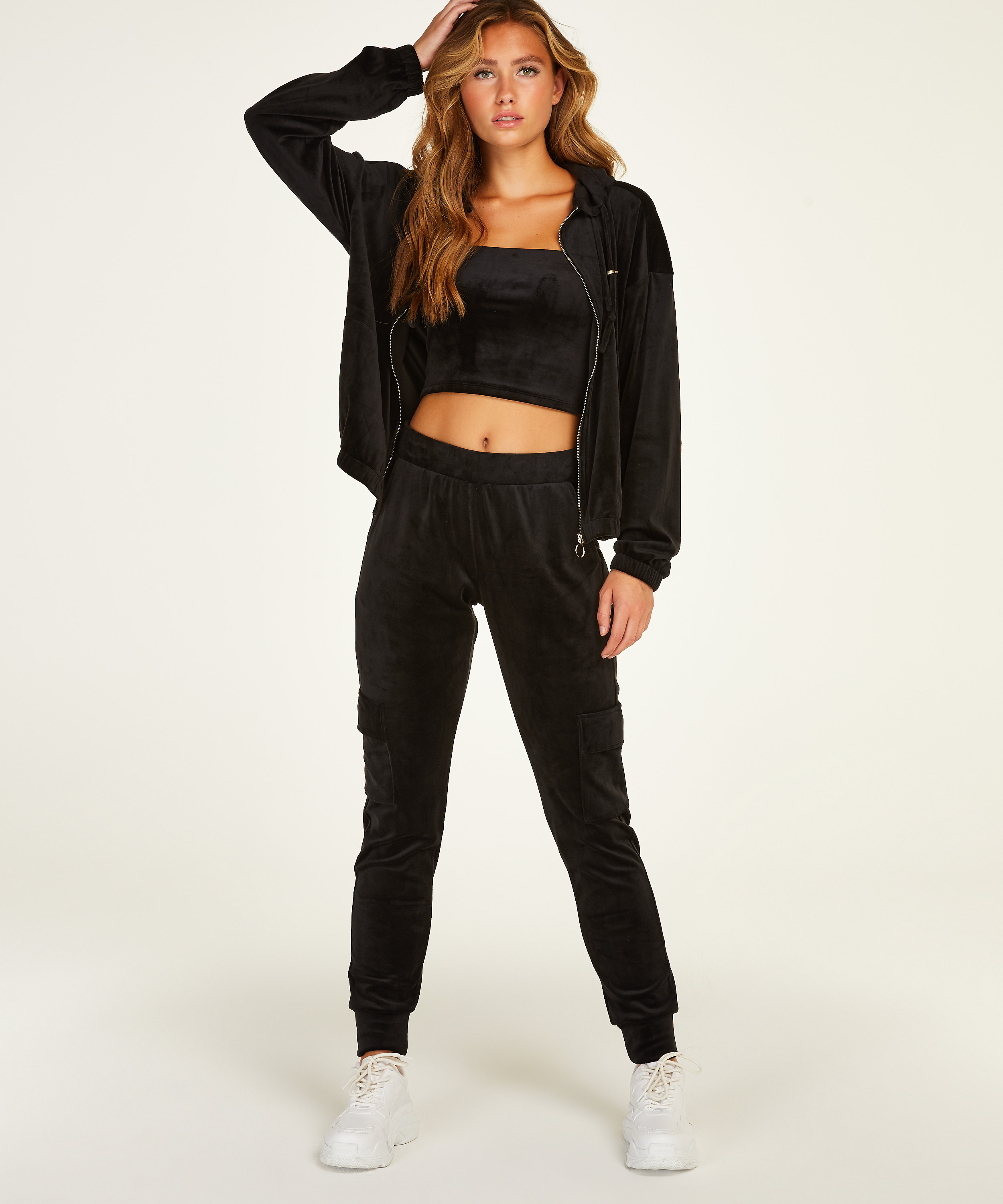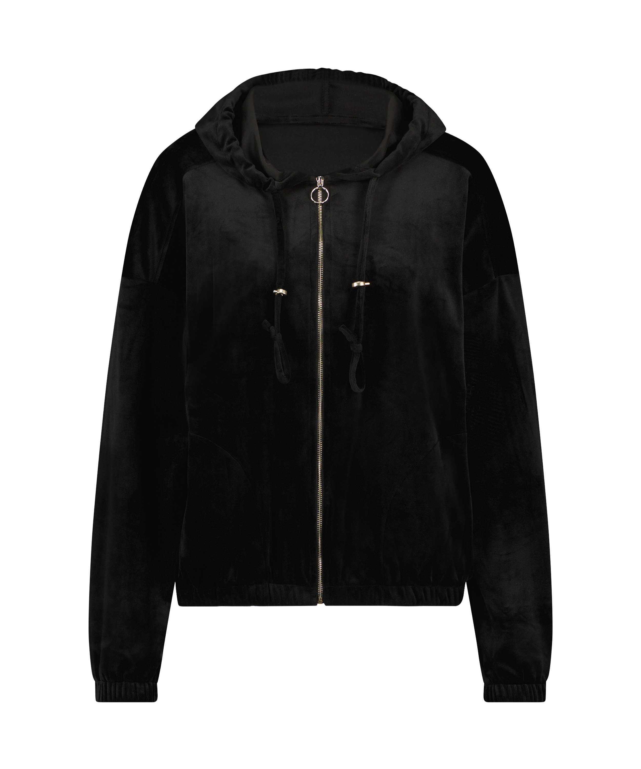 Chaqueta con capucha de terciopelo - Negro