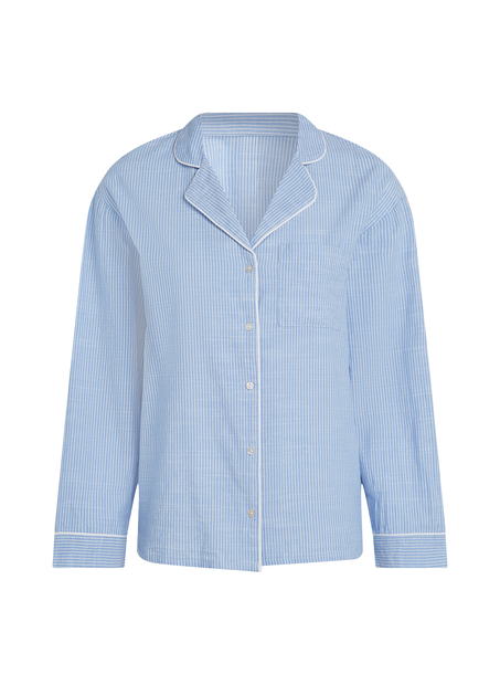 Sumérgete en el lujo acogedor con nuestra chaqueta de pijama de algodón. Confeccionada con algodón suave y transpirable, esta chaqueta combina perfectamente comodidad y estilo. El diseño abotonado en la parte delantera permite un uso fácil y aporta un aspecto elegante y atemporal. El clásico cuello añade un toque refinado, elevando el diseño general.
