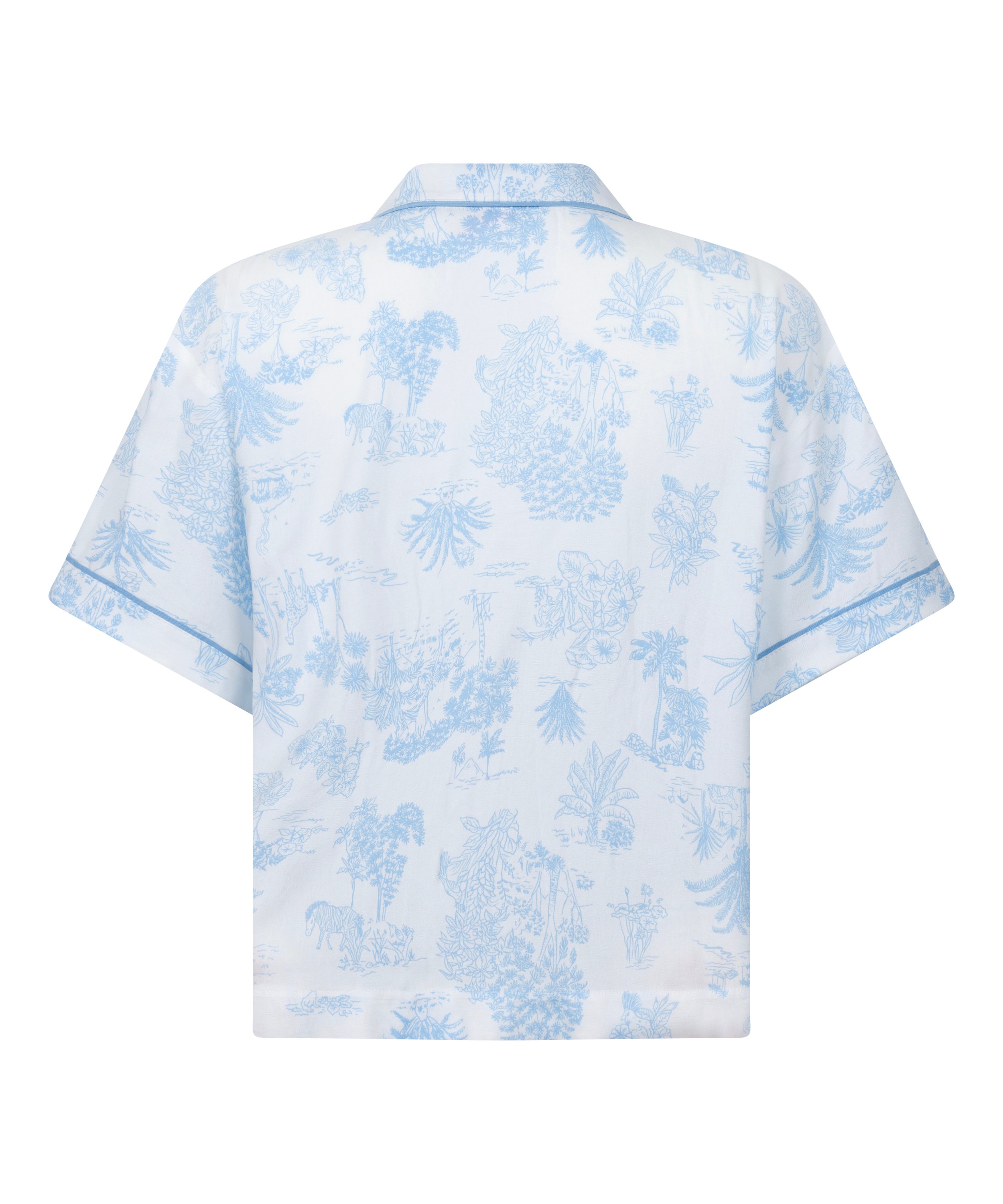 La comodidad clásica se funde con un estilo atemporal en nuestra chaqueta de pijama. Esta prenda, con cuello y cierre de botones, aporta un toque de estilo a tu ropa para dormir. Las mangas cortas favorecen un ajuste holgado y transpirable. Se puede combinar con los shorts a juego para ir a conjunto.