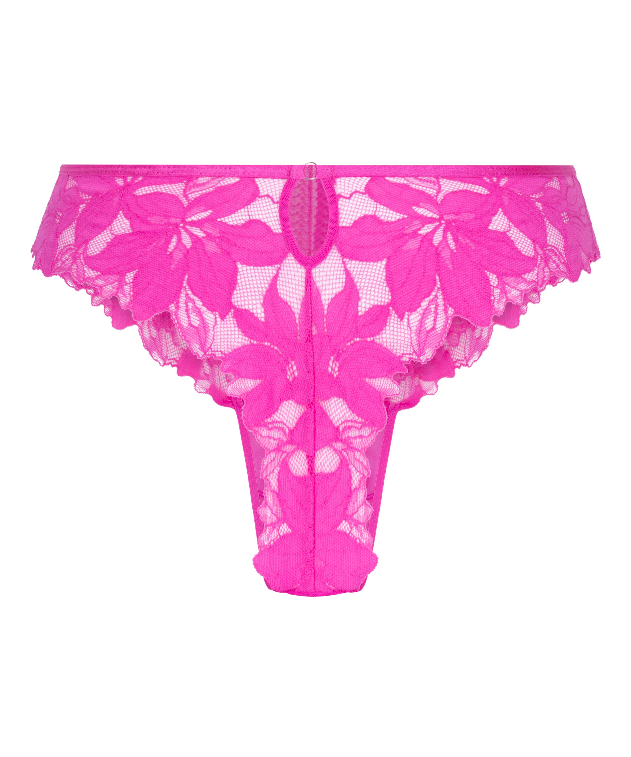 Si quieres lucir aún más tus curvas, este cheekini es perfecto para ti. Está cubierto con mucho encaje romántico. ¡Descubre el sujetador a juego para completar el conjunto!