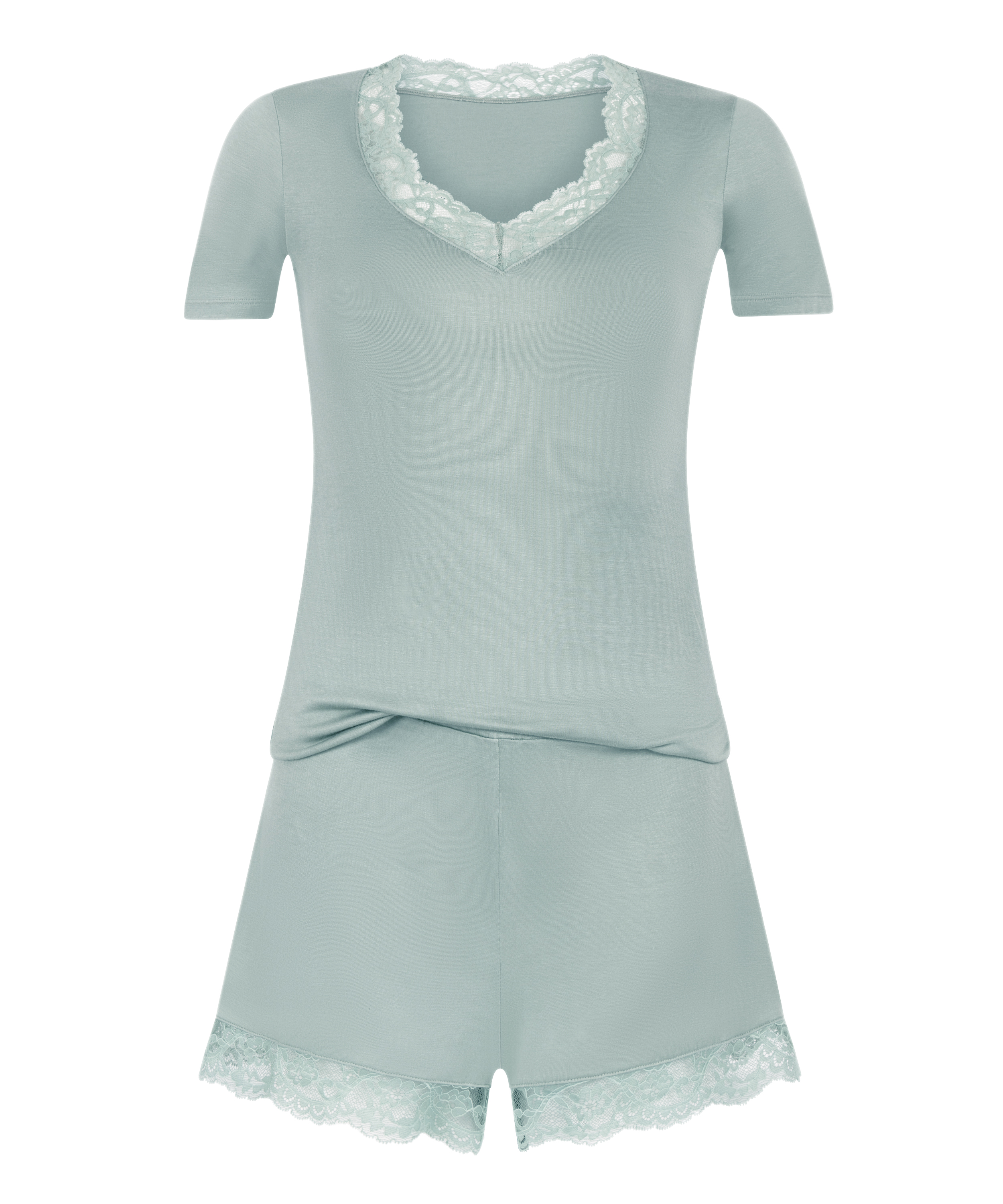 Relájate con estilo con nuestro conjunto de pijama, una fusión perfecta de comodidad y clase. Este conjunto incluye camiseta y short a juego, ambos confeccionados en suave tejido de punto para disfrutar de un ajuste relajado. Los detalles de encaje aportan un toque de romanticismo al diseño, mientras que el short presenta una cintura elástica para mayor comodidad y facilidad de uso.
