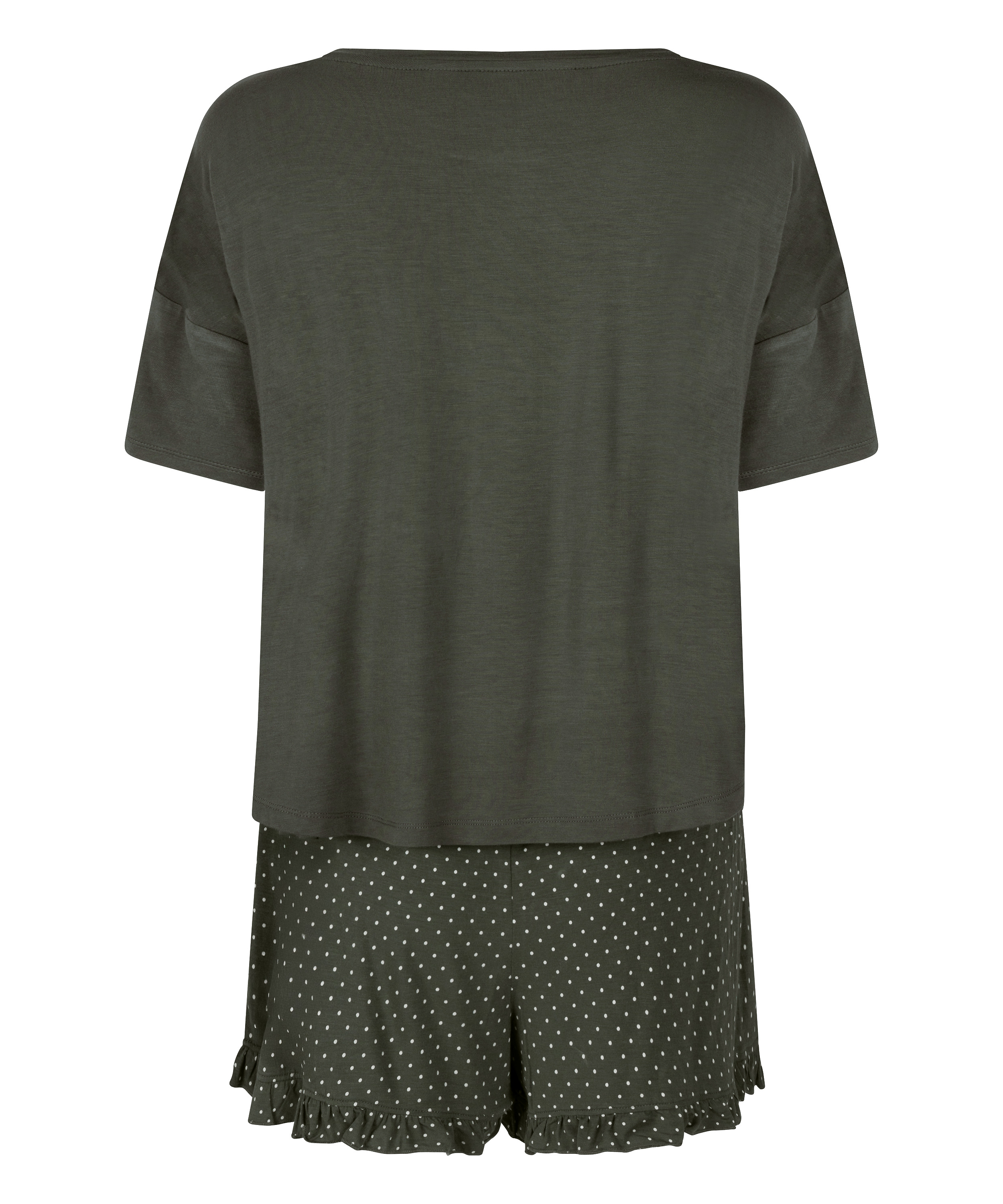 Desconecta con estilo con nuestro juego de pijama en punto. El pantalón presenta una cintura elástica para un ajuste cómodo y seguro, complementada con volantes en el contorno que añaden un toque divertido. Combinado con una camiseta ajustada, este conjunto garantiza el máximo confort y comodidad. Combínalo con tus zapatillas favoritas para un look ideal.