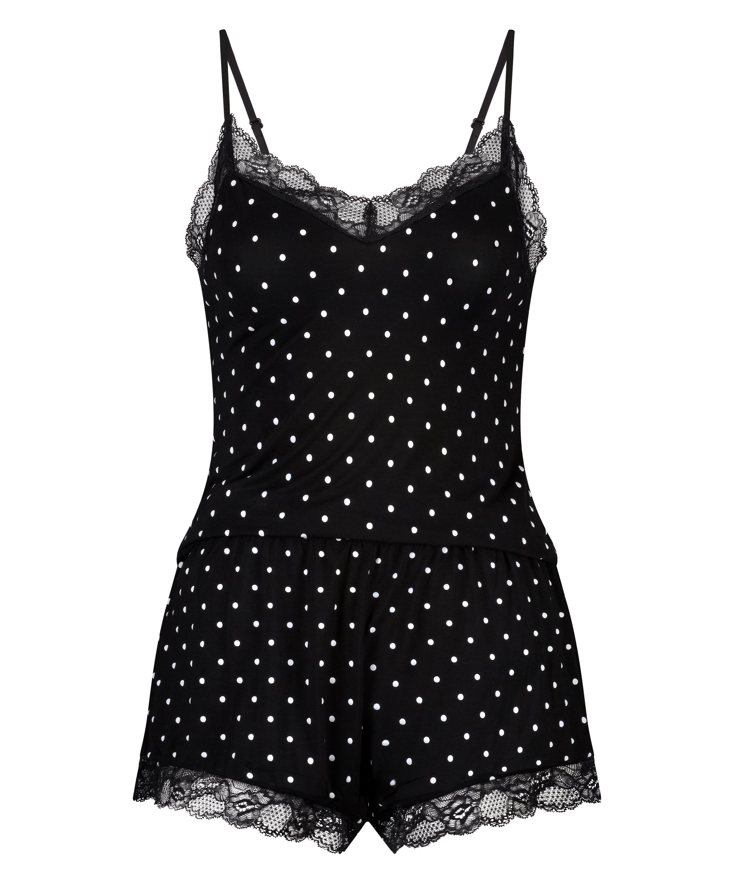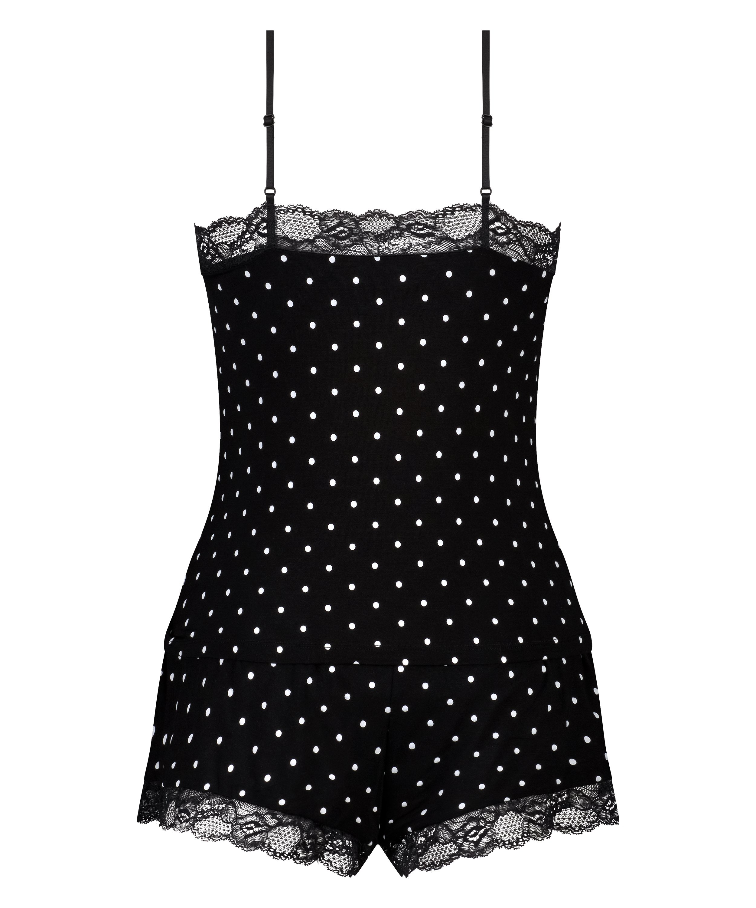¡En este conjunto de pijama dormirás muy bien! Está acabado con detalles (ideales) de encaje. ¡Combínalo con un bonito kimono o bata de baño para lucir tu look más ideal!