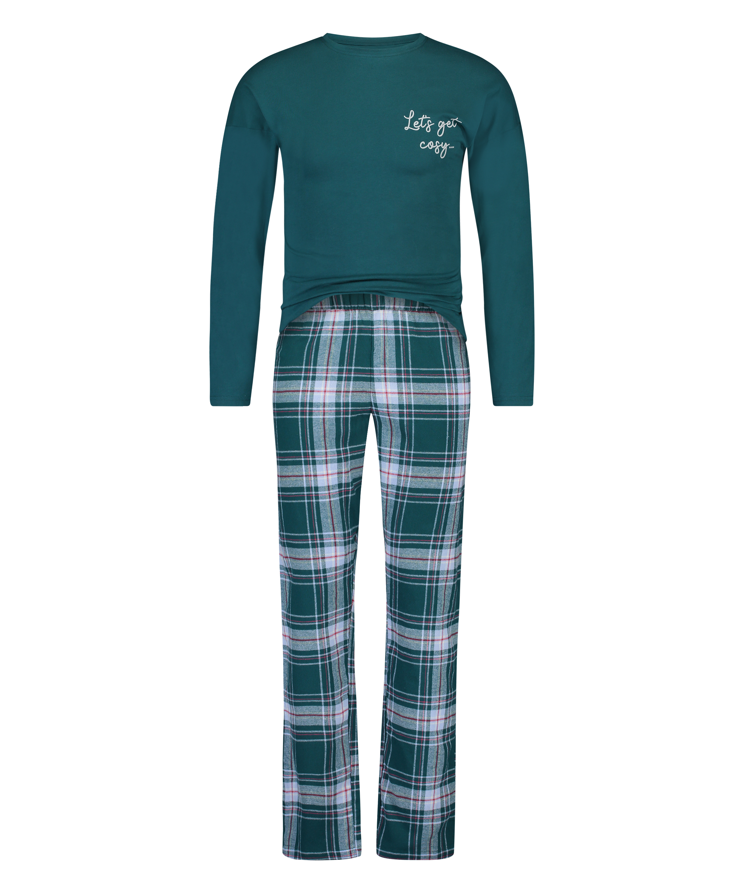 ¡Pijamas a juego para toda la familia! Este pijama para hombre consta de un top con un estampado y un bonito pantalón a cuadros. ¡Supercómodo!