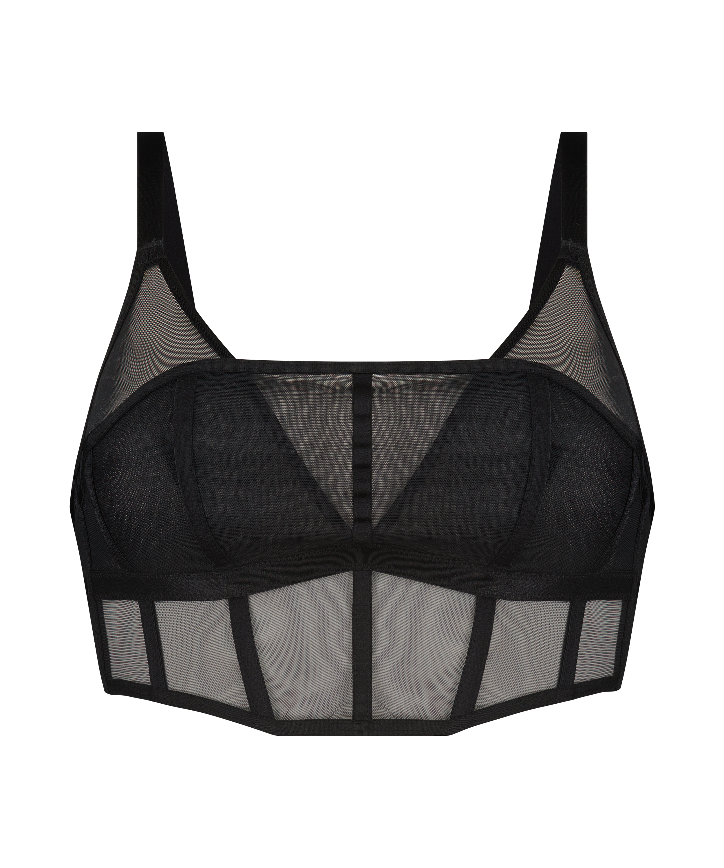 ¡Siéntete cómoda y femenina con este top! Hecha con material de malla para crear un look semitransparente. El top tiene un corte largo para mayor comodidad. ¡Se puede combinar con las braguitas a juego!