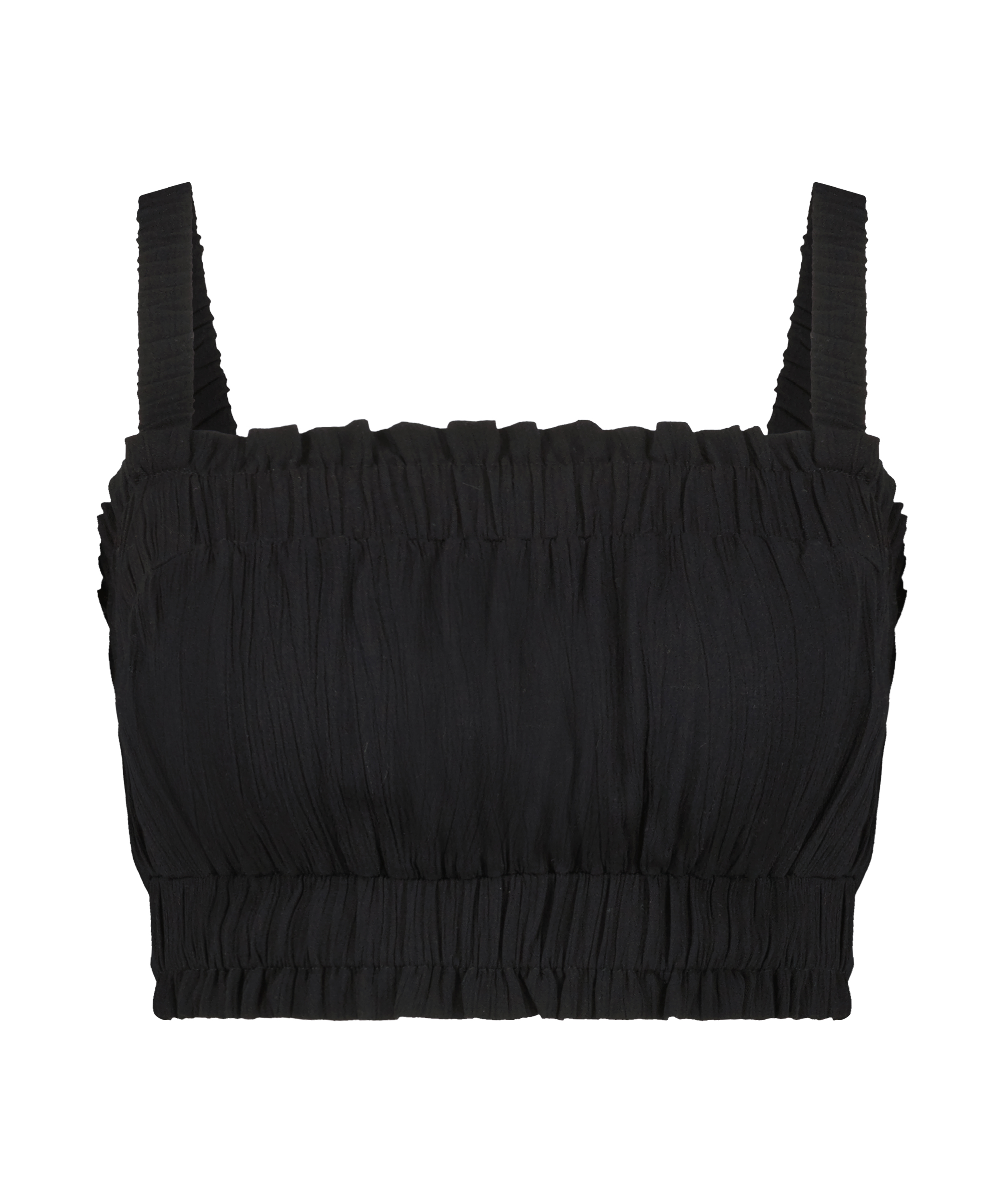 Este crop top es perfecto para lucir un conjunto de verano ideal. Es bonito y vaporoso, tiene un efecto fruncido y tirantes finos y anchos. Combínalo con un bonito pantalón.